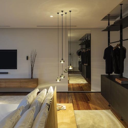 A Design Suíte 5, criada pela arquiteta Suami Perdrollo, é um ambiente aconchegante, que reúne sobriedade e despojamento. O espaço de 32m² equilibra simplicidade, com estilo singular e bom gosto, traz peças assinadas pelo designer brasileiro Paulo Alves. Essa suíte possui menor conforto acústico devido a proximidade com a área do Bistrô.