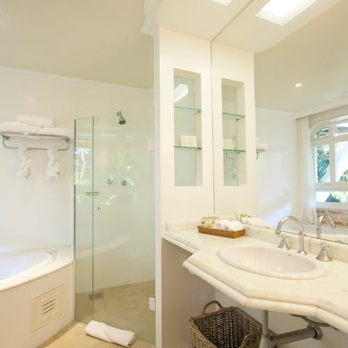Localizada próxima ao Bistrô Felissimo, a Diamond Suíte 10, possui 43,2m². Conta com varanda e está próxima a Vila Graça. Com banheira de hidro.