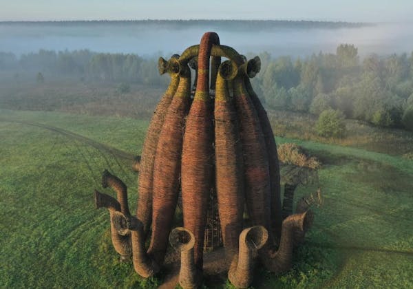 A construção foi projetada pelo escritório ZAV Architects, que está capacitando a comunidade local na técnica de bioconstrução.
