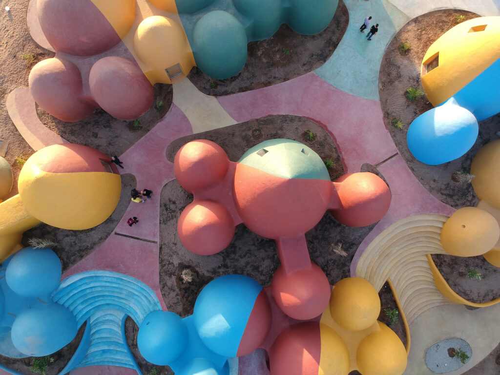Além da vila há um edifício multiuso chamado ‘majara’ que une a vida da população local e dos visitantes, tanto cultural quanto economicamente. As bioconstruções são capazes de acomodar uma variedade de programas, sendo que a maioria deles oferece acomodação. Outras cúpulas contêm áreas comuns com espaço para os residentes lavarem roupa ou jantarem em um café no local.