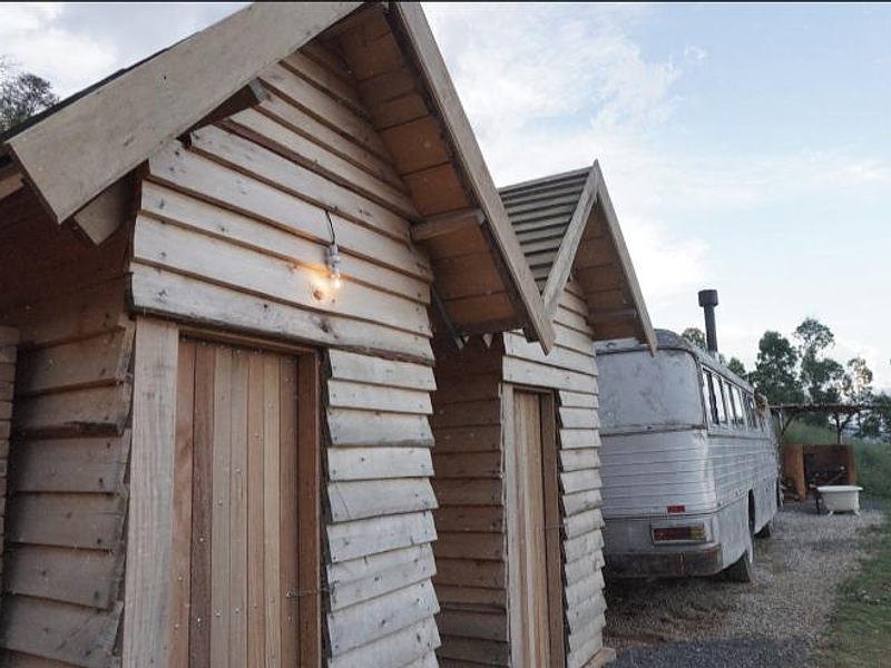 O Valley atende a grupos. A propriedade possui 3 tendas no estilo teepee indígena, e é onde o antigo ônibus fica posicionado.