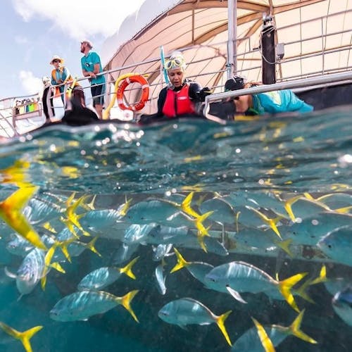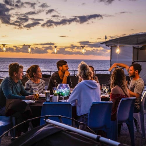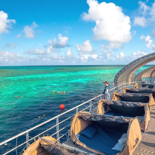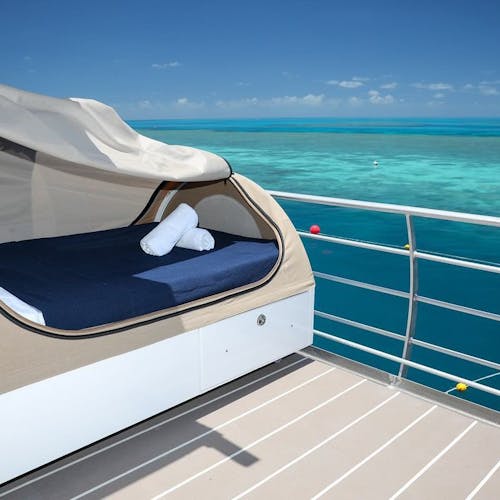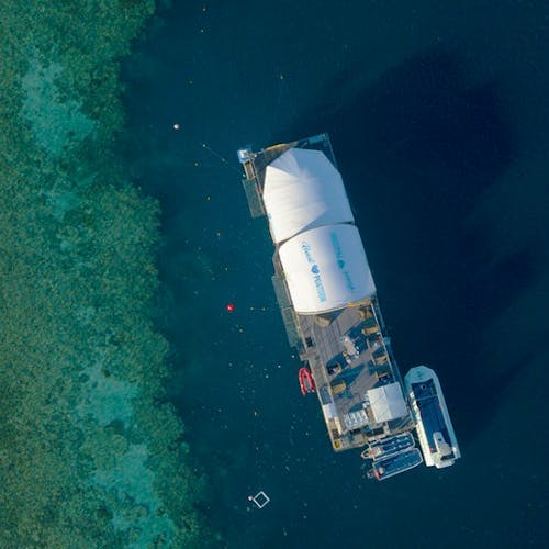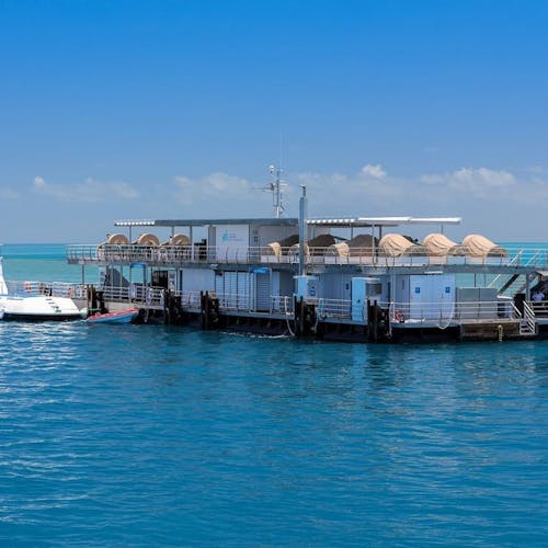 Relançado em 2019, o pontão hospeda excursionistas que vão para um dia de atividades à bordo da embarcação, convidados do Reefsleep do convés e alguns sortudos que irão para uma experiência Reefsuite privada com tudo incluído.