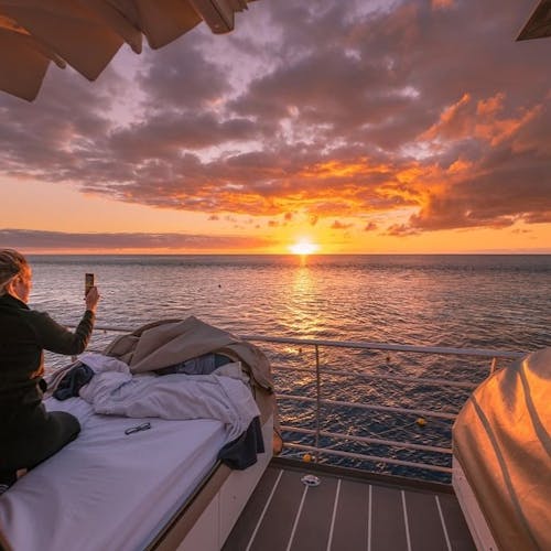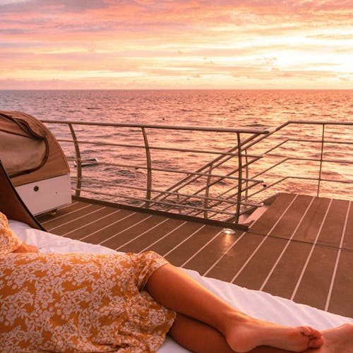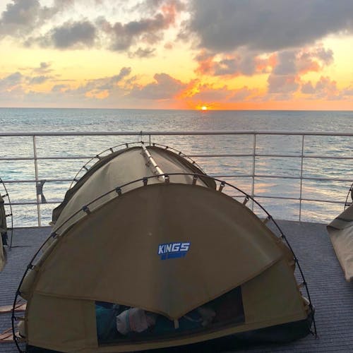 O dia dentro da água, à noite sob as estrelas. É assim a experiência na "tenda" que fica sobre a embarcação.