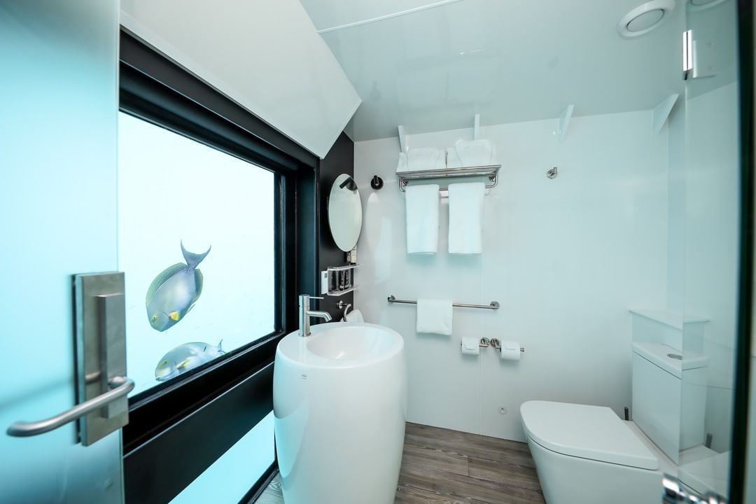 🛌. São apenas dois quartos subaquáticos disponíveis (com cama king-size ou duas camas individuais). Cada quarto dispõe de roupa de cama premium, banheiro com paredes de vidro e vista panorâmica do espetacular mundo subaquático da Grande Barreira de Corais. Todas as refeições inclusas, café da manhã, chás da manhã e da tarde, almoço e jantar. Todas as bebidas, incluindo cerveja e vinho (coquetéis e destilados a um custo adicional). Também incluso o jantar sob as estrelas. Atividades no recife, incluindo um passeio guiado de mergulho com snorkel e passeio semissubmarino também fazem parte do pacote, assim como acesso ao observatório subaquático. Mergulho autônomo: à parte.