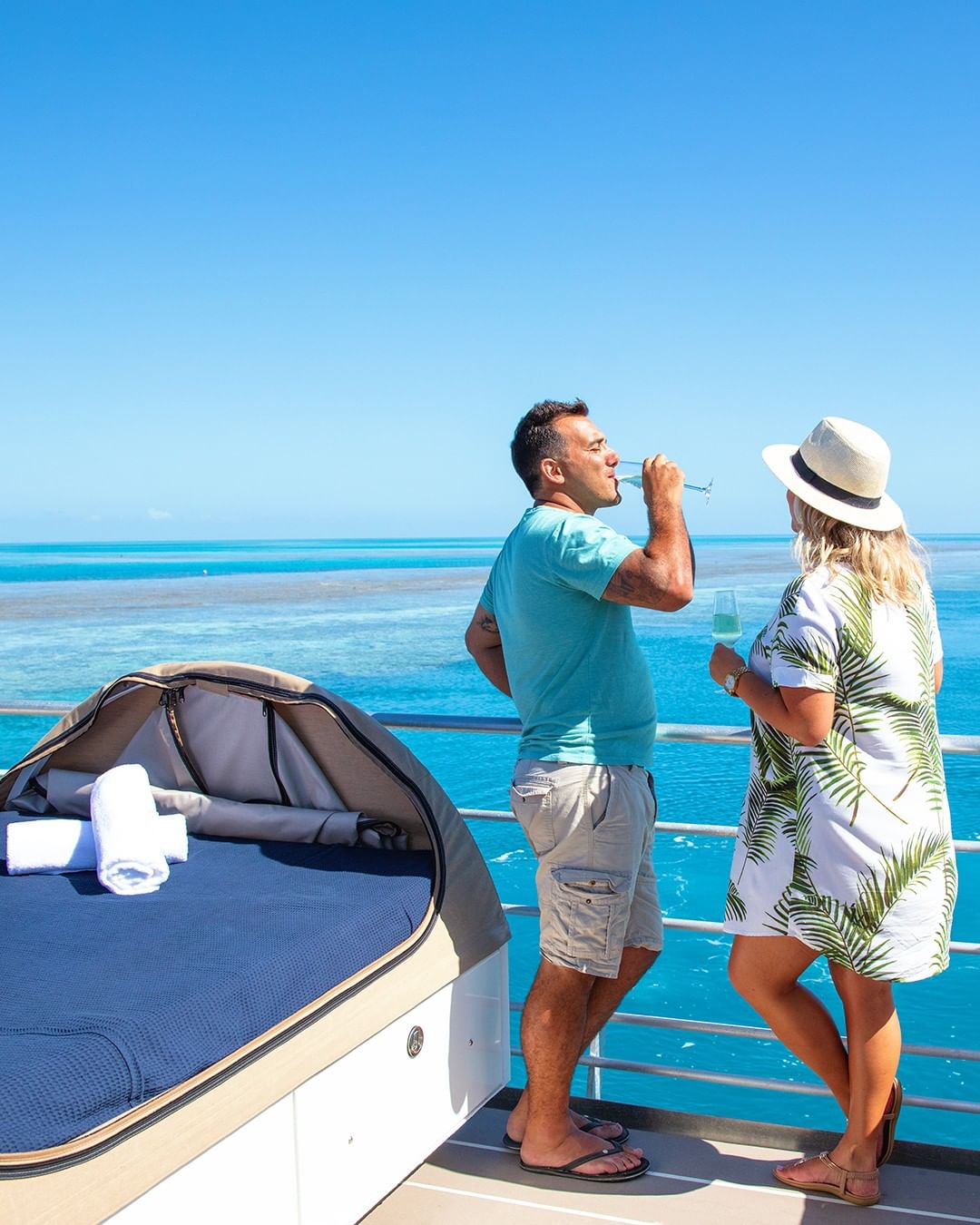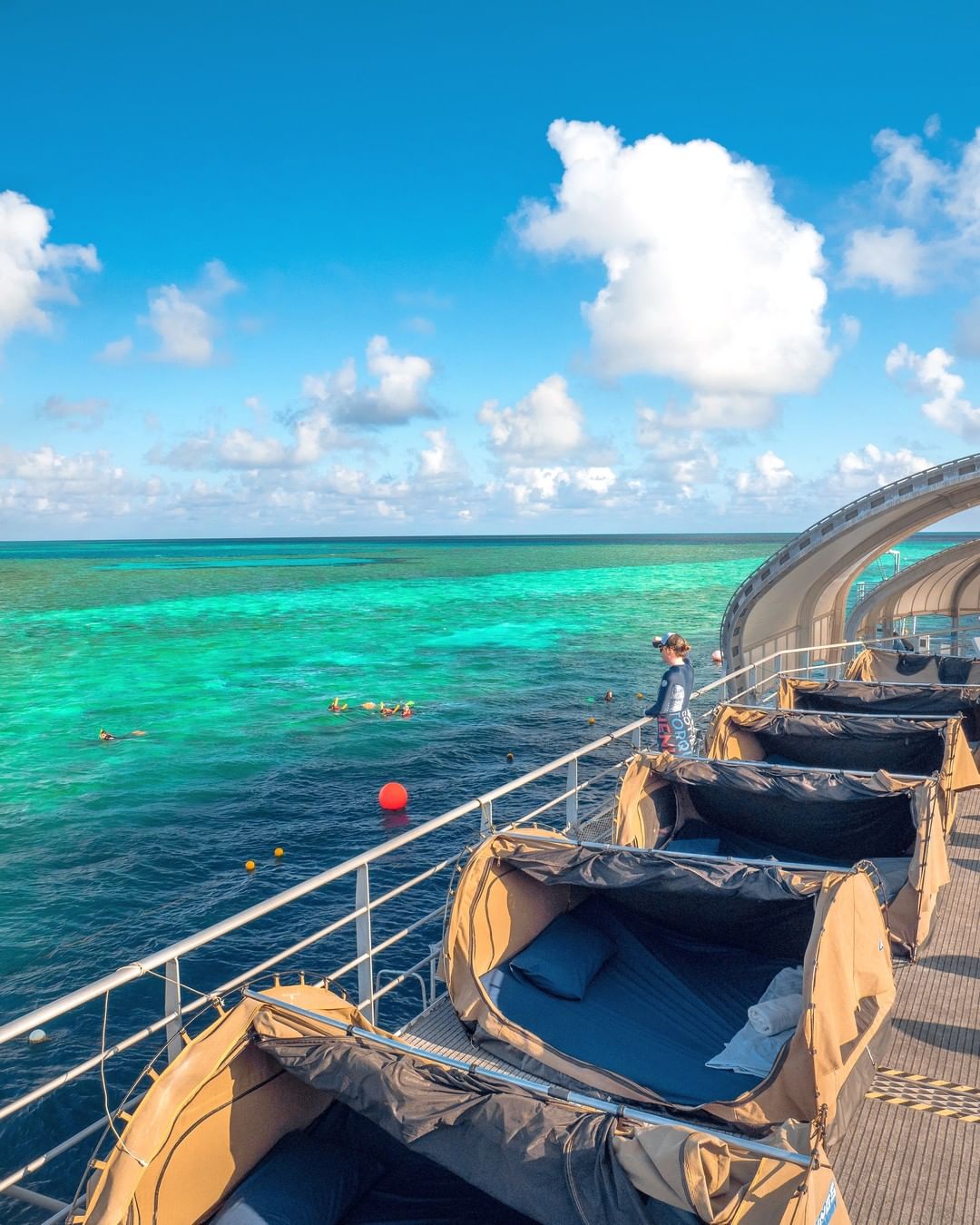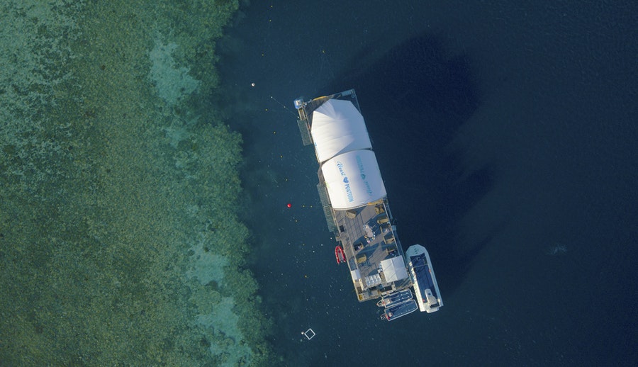 Relançado em 2019, o pontão hospeda excursionistas que vão para um dia de atividades à bordo da embarcação, convidados do Reefsleep do convés e alguns sortudos que irão para uma experiência Reefsuite privada com tudo incluído.