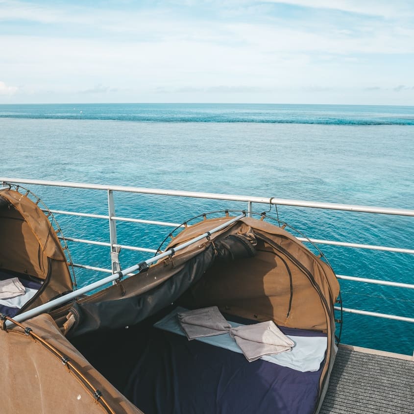 Reefsleep pode ser vivenciada em dois dias e uma noite na Grande Barreira de Corais - uma oportunidade íntima e única na vida de dormir sob as estrelas em um cenário totalmente paradisíaco e totalmente no meio do mar. Durante a hospedagem é possível nadar saindo direto da cama e já pulando na água, praticar snorkel, mergulhar e explorar o incrível ecossistema natural.