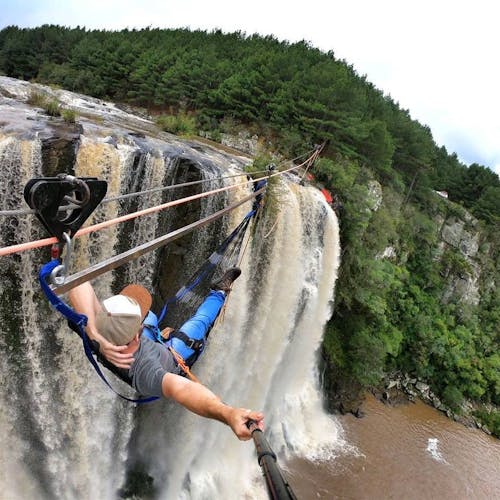 Rede Suspensa, uma experiência inédita que acontece no Cachoeirão do Rio Cerquinha, em Bom Jesus, município do Rio Grande do Sul. A cachoeira paradisíaca tem mais de 50 metros de altura e 90 metros de extensão. A experiência também pode acontecer em outros locais sob consulta prévia.