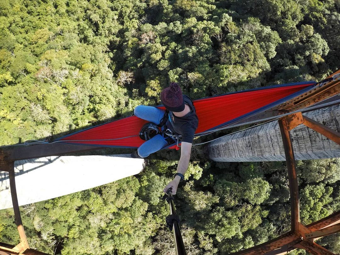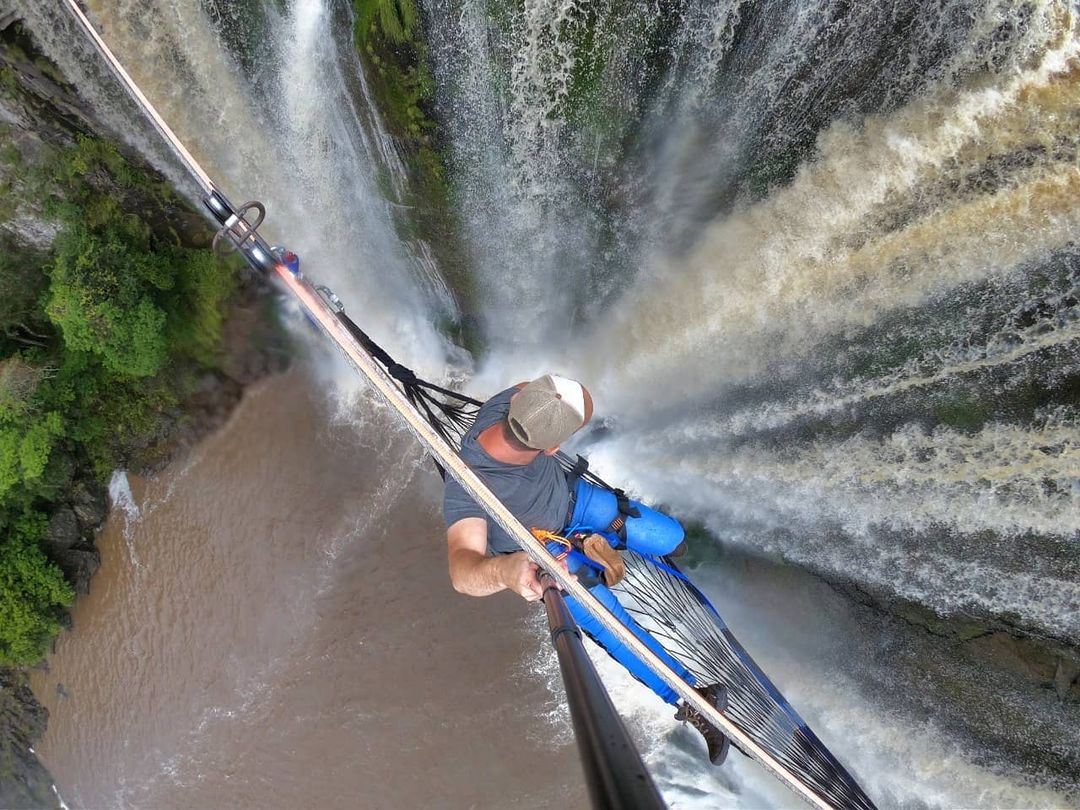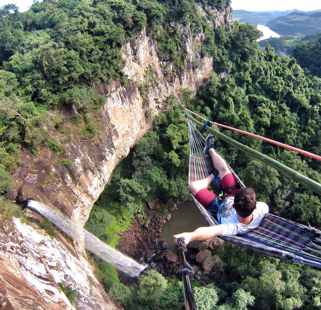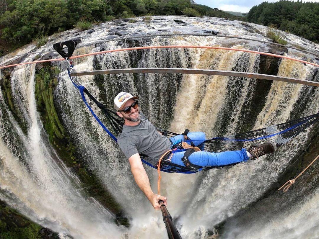 Você relaxaria em uma rede suspensa a 50 metros de altura sobre uma cachoeira? Uma aventura brasileira inédita!