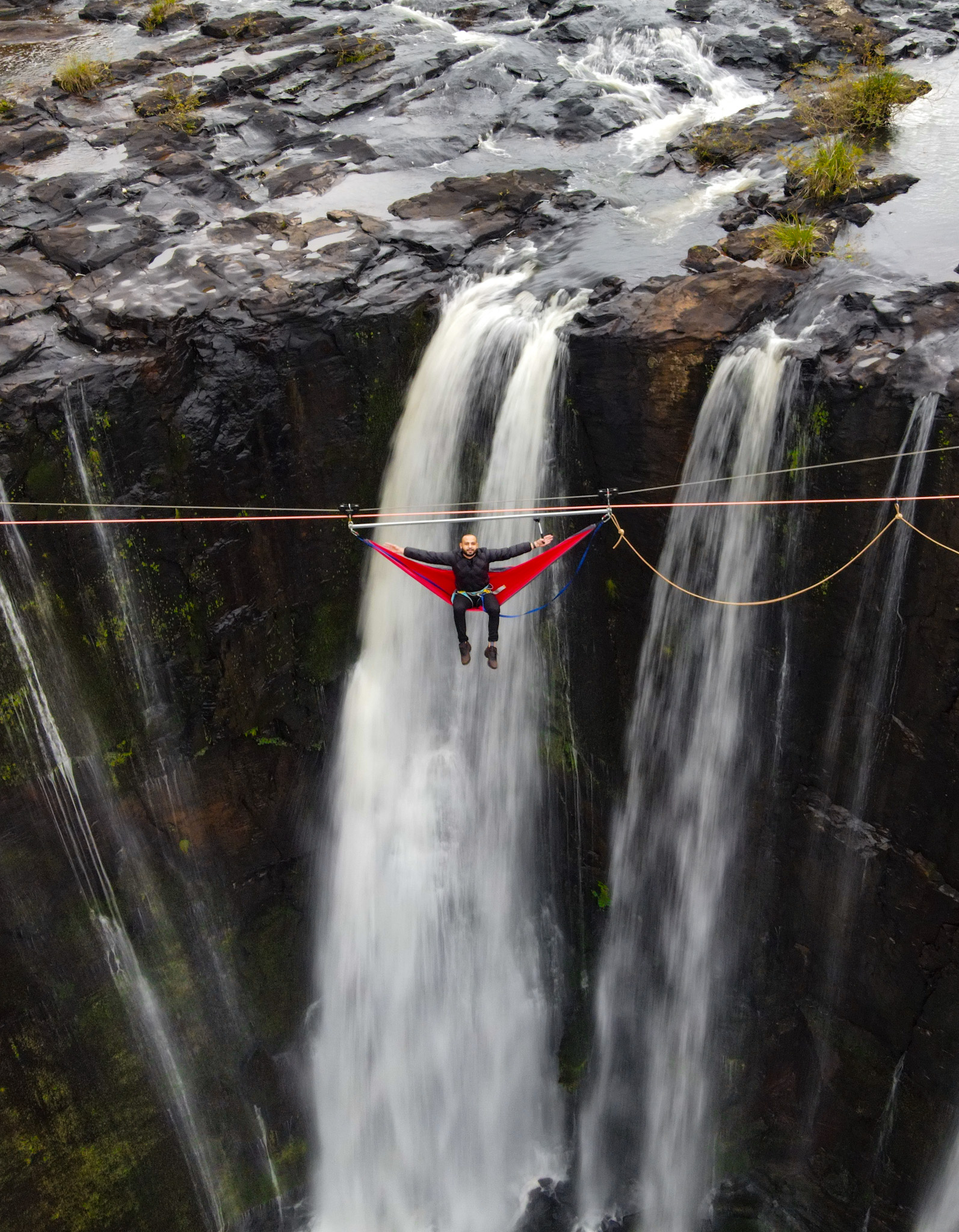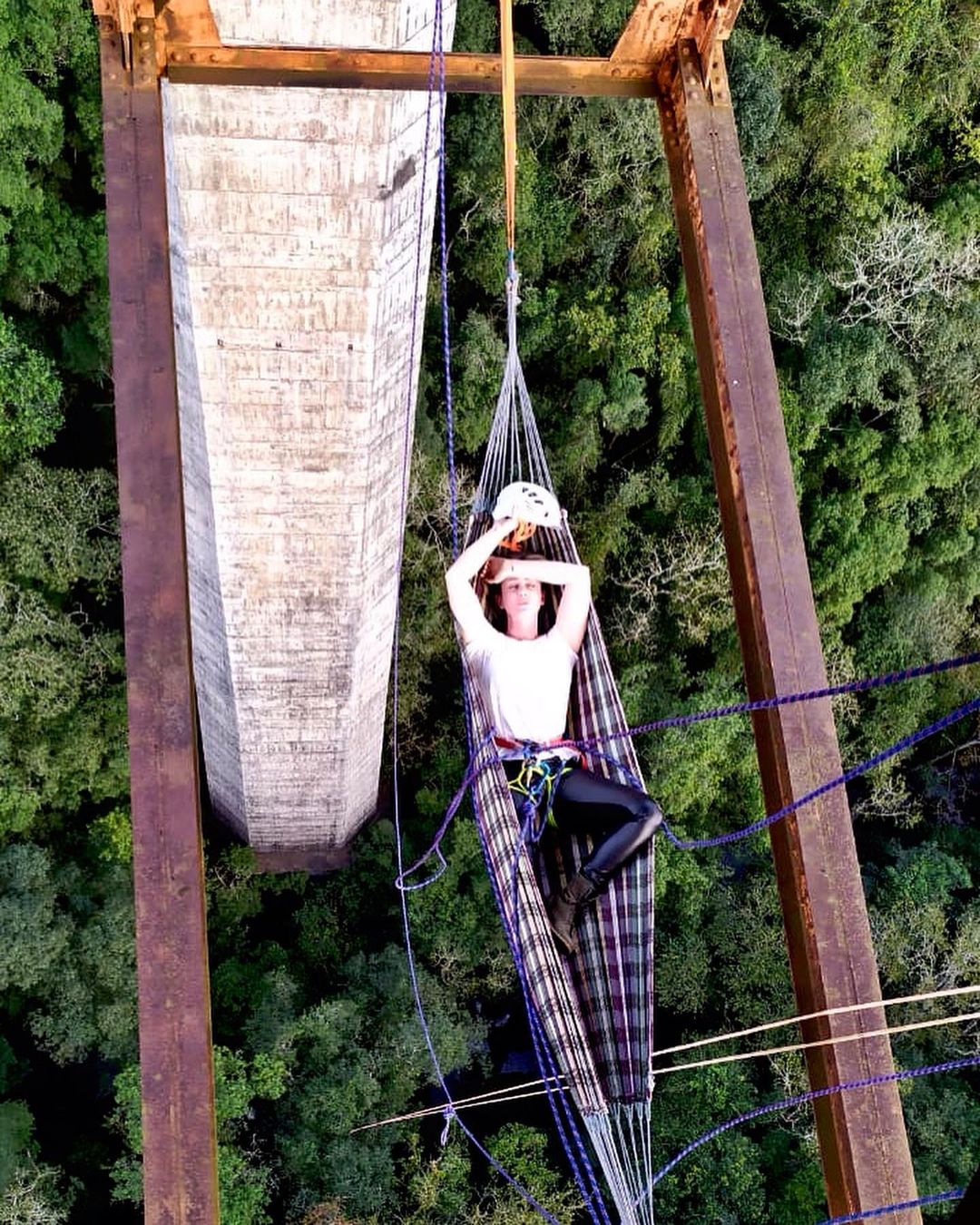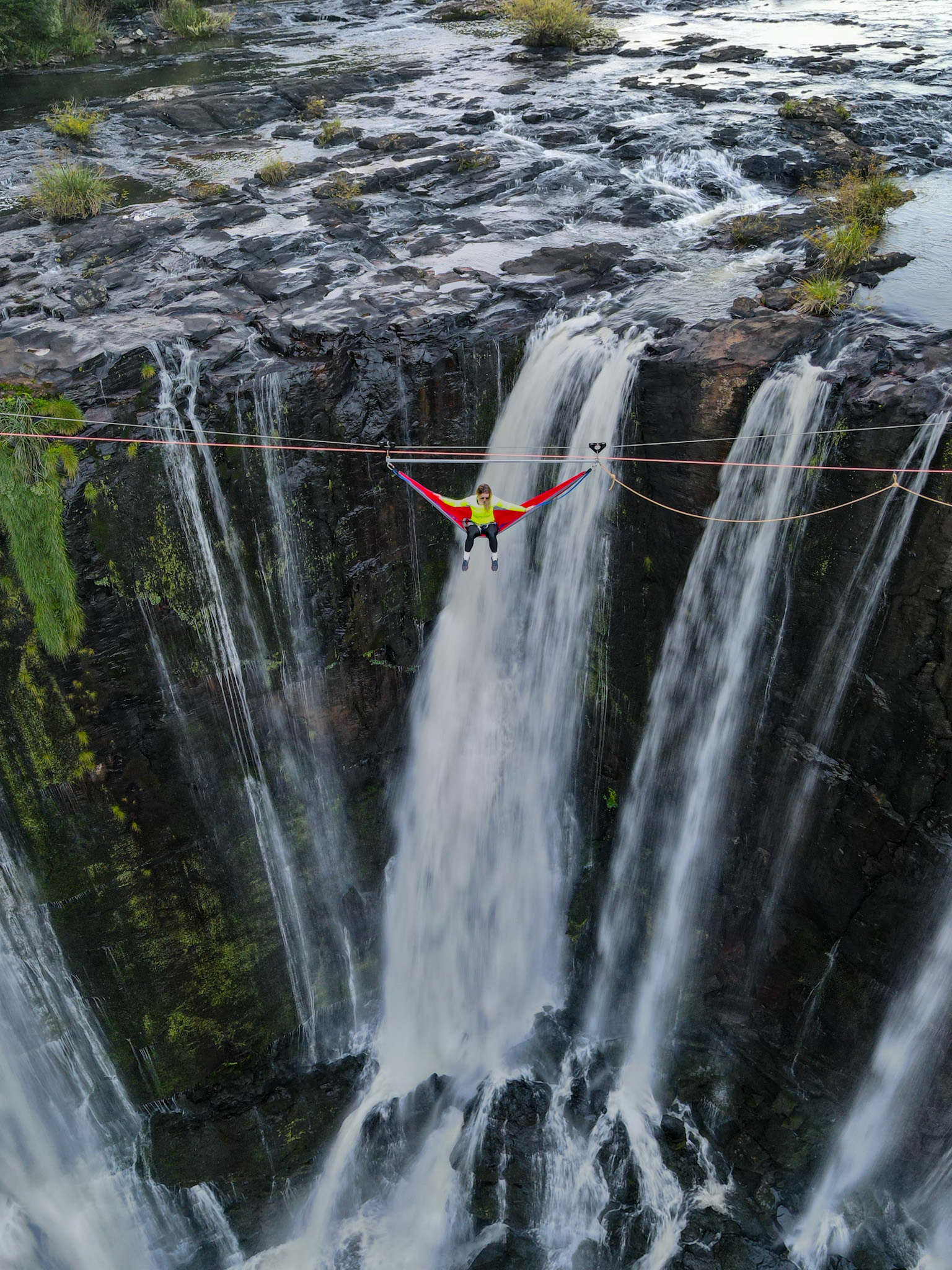 Você relaxaria em uma rede suspensa a 50 metros de altura sobre uma cachoeira? Uma aventura brasileira inédita!