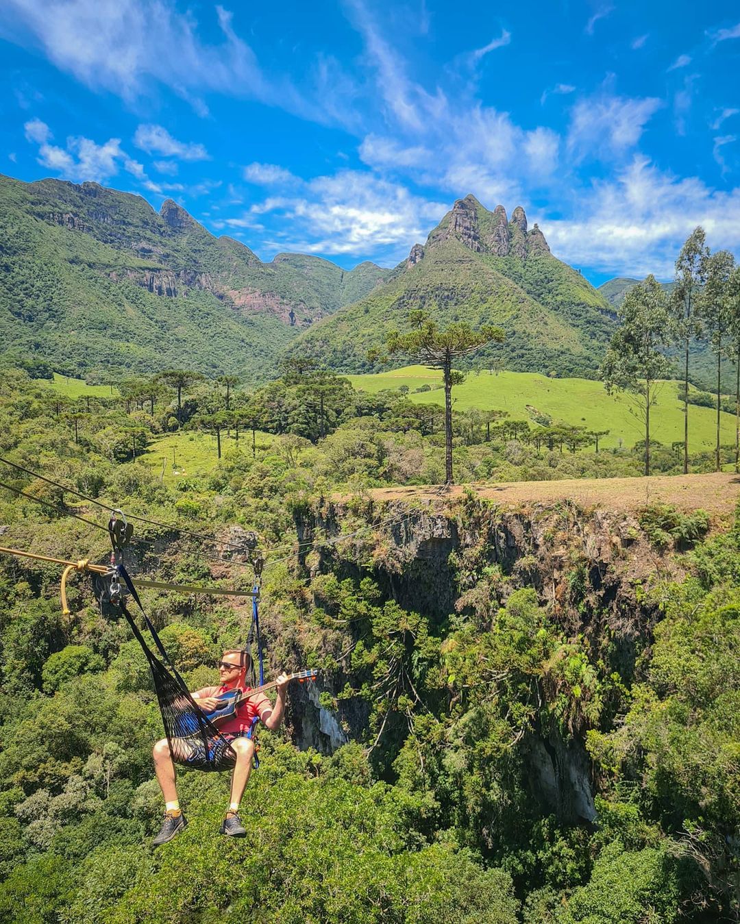 A rede suspensa é realizada a aproximadamente 50 metros de altura onde é possível contemplar a paisagem maravilhosa e ter uma sensação total de liberdade.