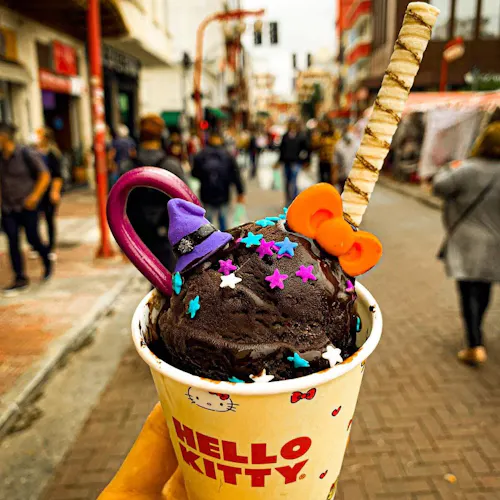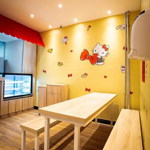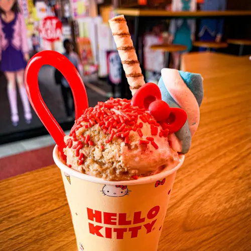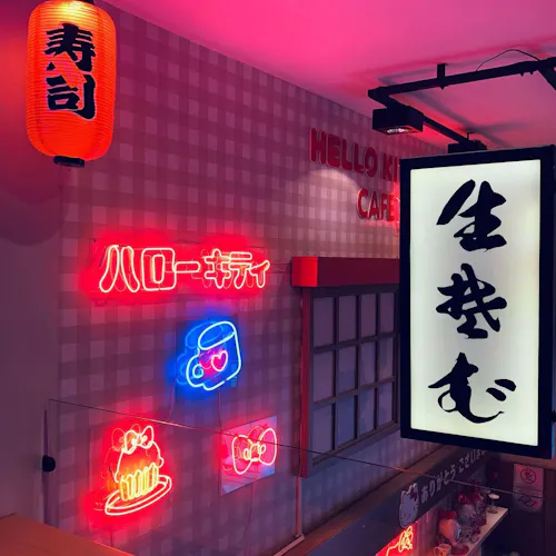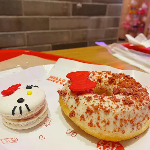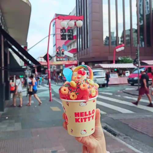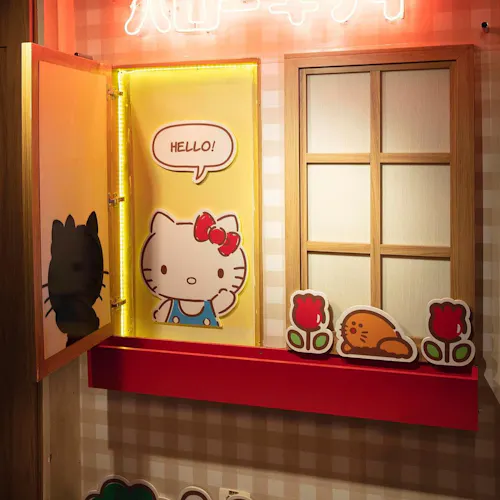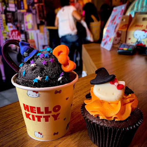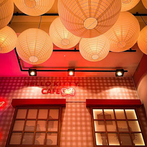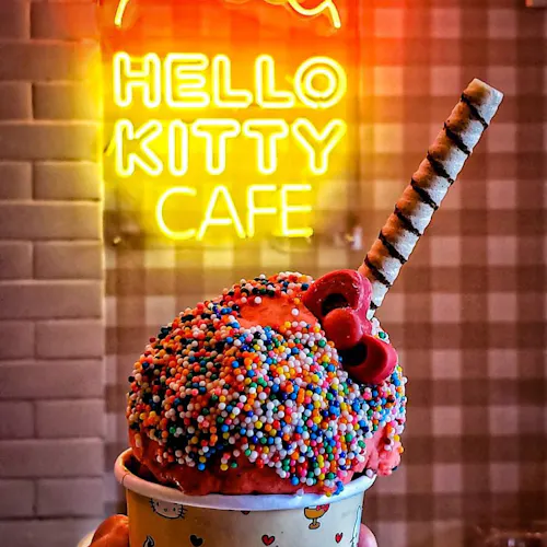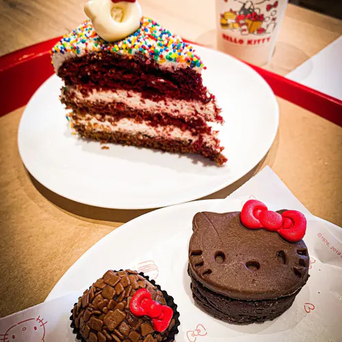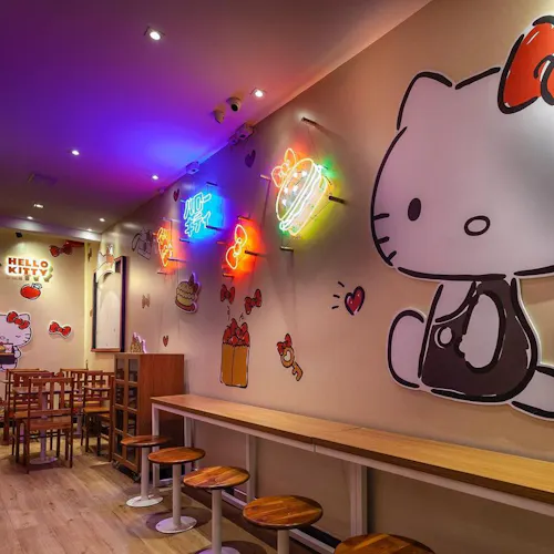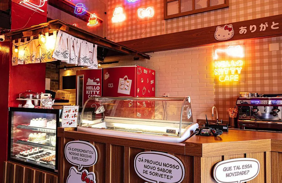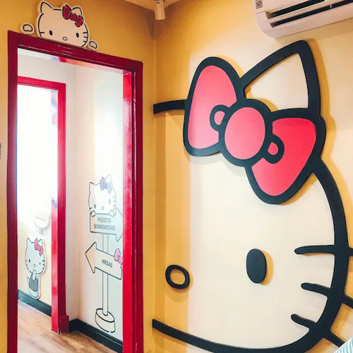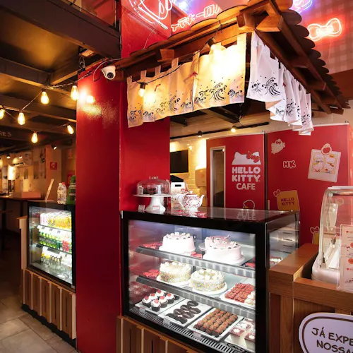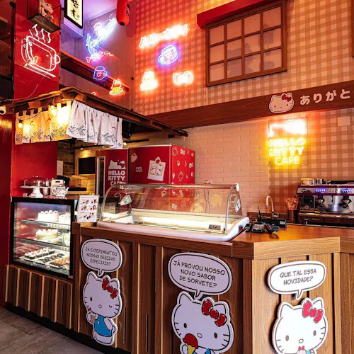 Este é o primeiro Café Temático da Hello Kitty no país. O espaço tem um ambiente aconchegante e conta com decoração repleta de neons, desenhos, itens fofos e com a gatinha espalhada pelo lugar. O cardápio é variado, inclusive com opções vegetarianas.