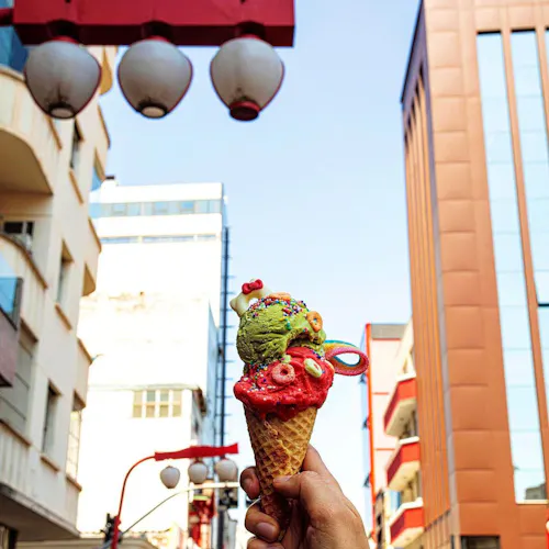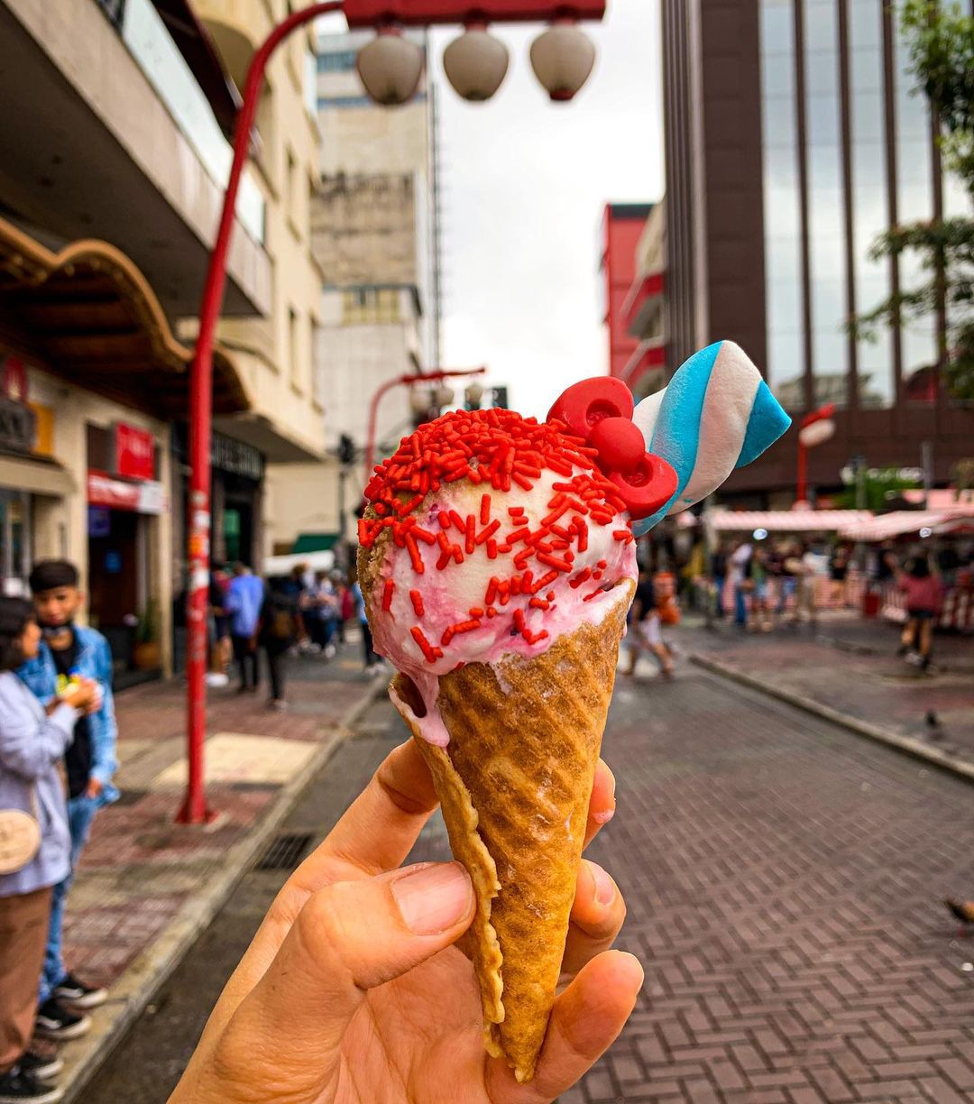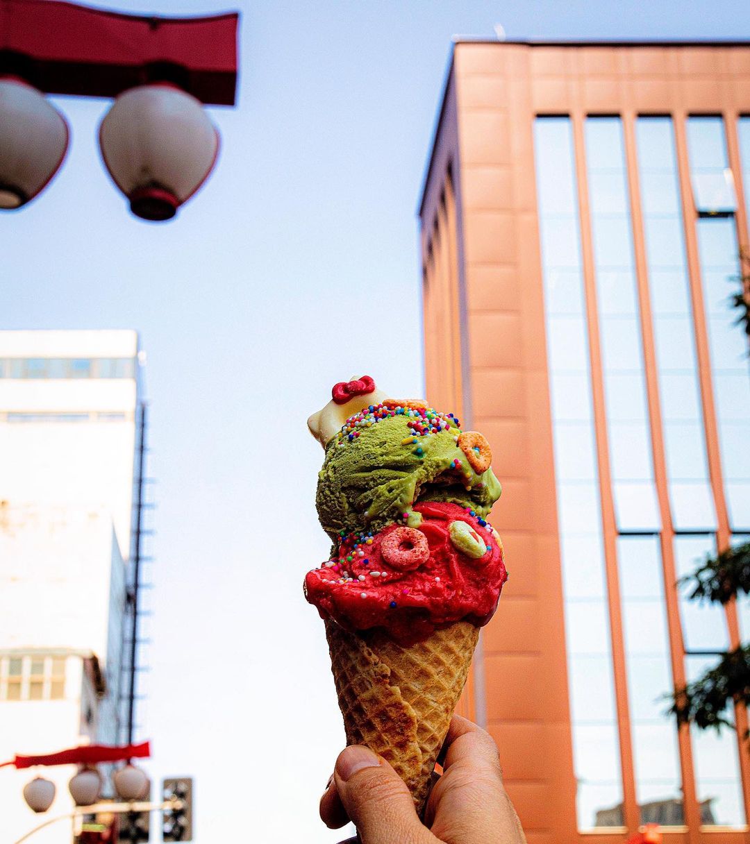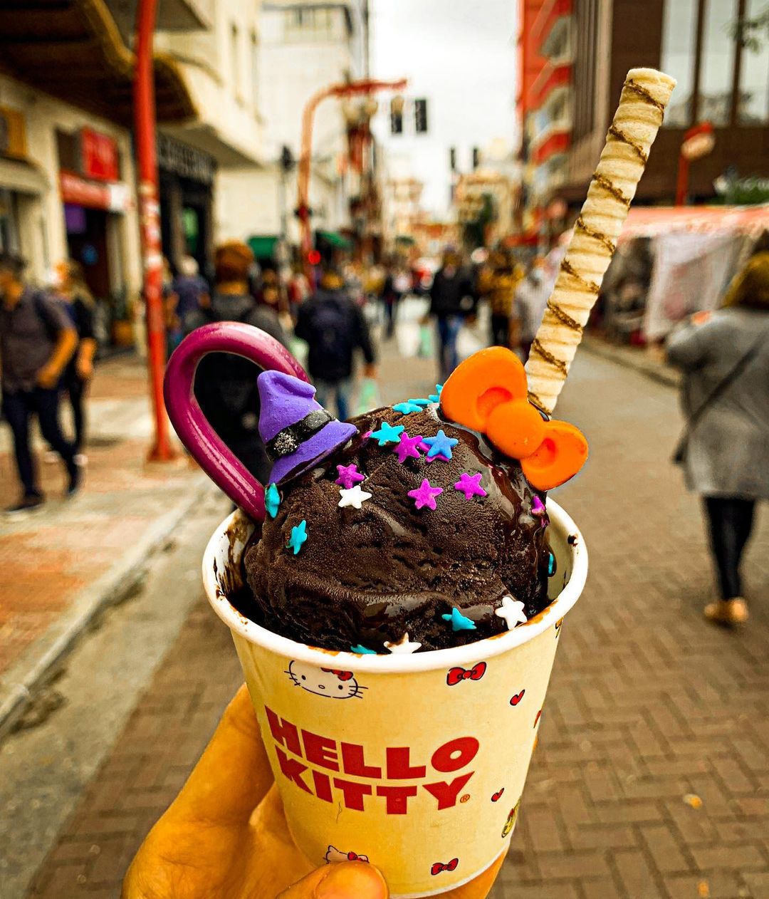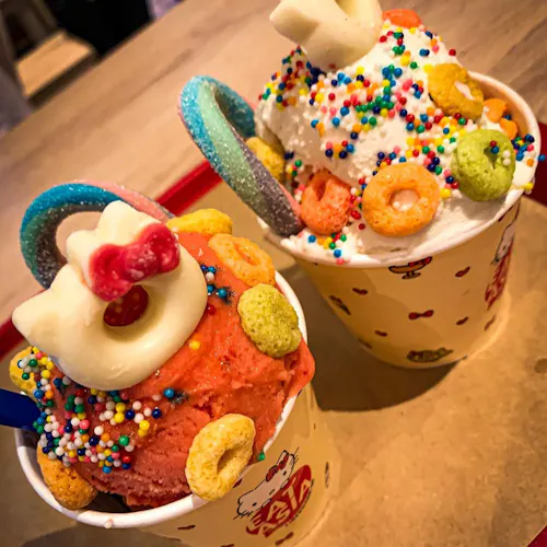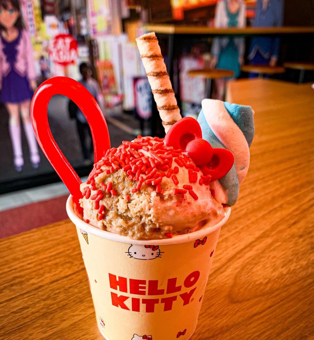 Os fãs de doce se preparem: alguns dos destaques do novo espaço são os Gelatos by Hello Kitty bem elaborados e cheios de toppings, macarons, brownies de chocolate, os bolos multicoloridos e o um Banoffe.