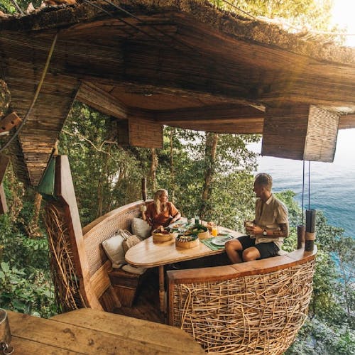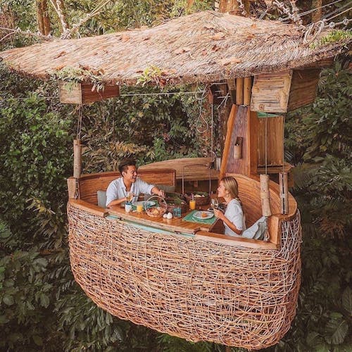 Um restaurante em um ninho de pássaros onde os garçons vão até você de tirolesa. Conheça essa experiência inspirada na natureza