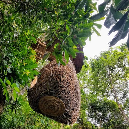 Antes de tudo você já deve saber que fará seu almoço à uma altura de 10 metros do chão e entre as árvores, afinal, um ninho de pássaros de verdade é feito nas alturas e entre a natureza.
