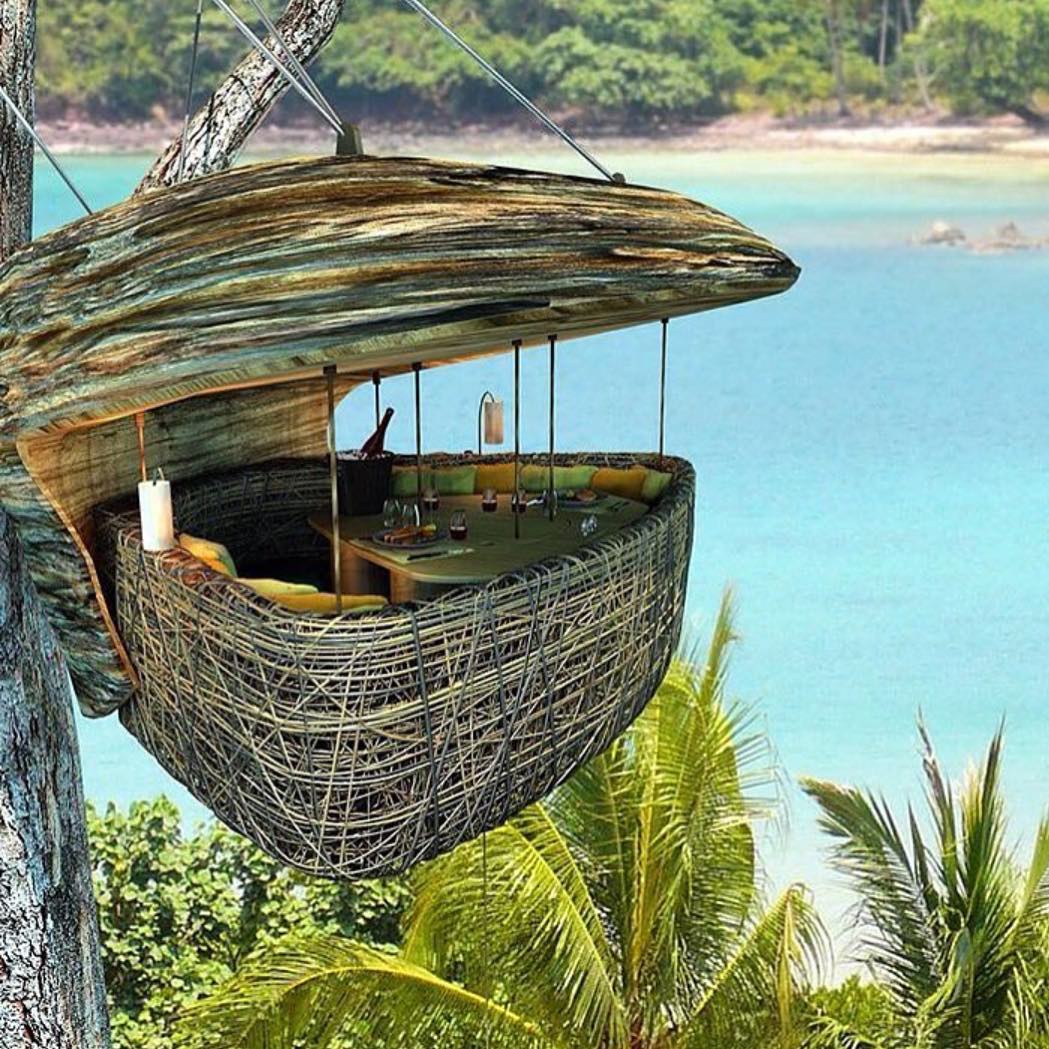 Um restaurante em um ninho de pássaros onde os garçons vão até você de tirolesa. Conheça essa experiência inspirada na natureza