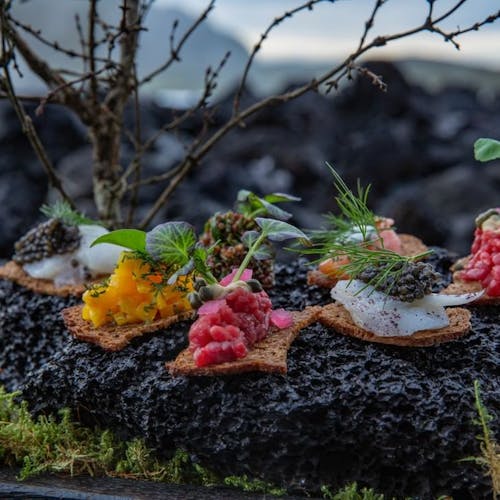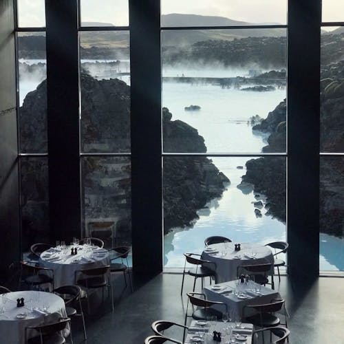 🌾 Restaurante Moss: Ocupa o ponto mais alto da Lagoa Azul, oferecendo uma vista deslumbrante do horizonte vulcânico. Opção requintada da cozinha islandesa, em 2019 recebeu recomendação do Guia Michelin. Os pratos transitam entre sabores da montanha e do mar e o restaurante oferece a opção de Menu Degustação Clássico e Vegano, onde os clientes provam de 5 a 7 pratos. Uma adega subterrânea incrível, inteira de pedras basalto, completa a experiência
