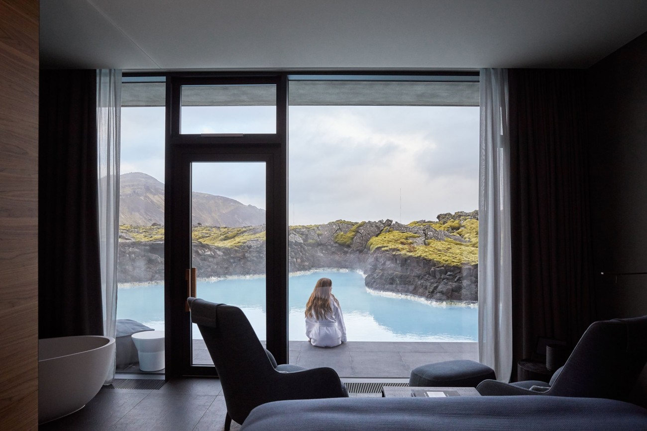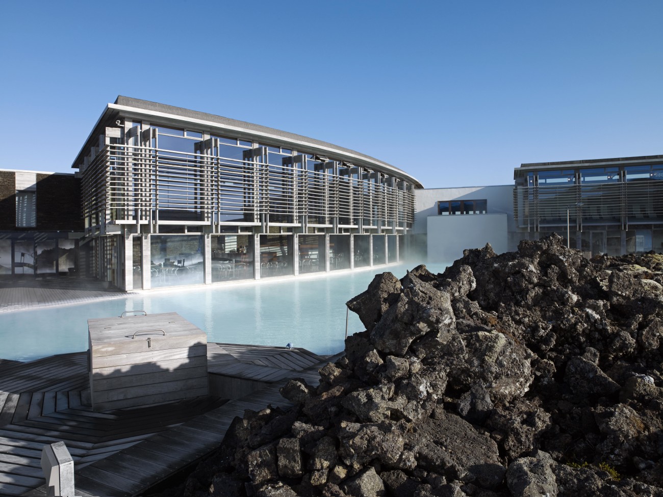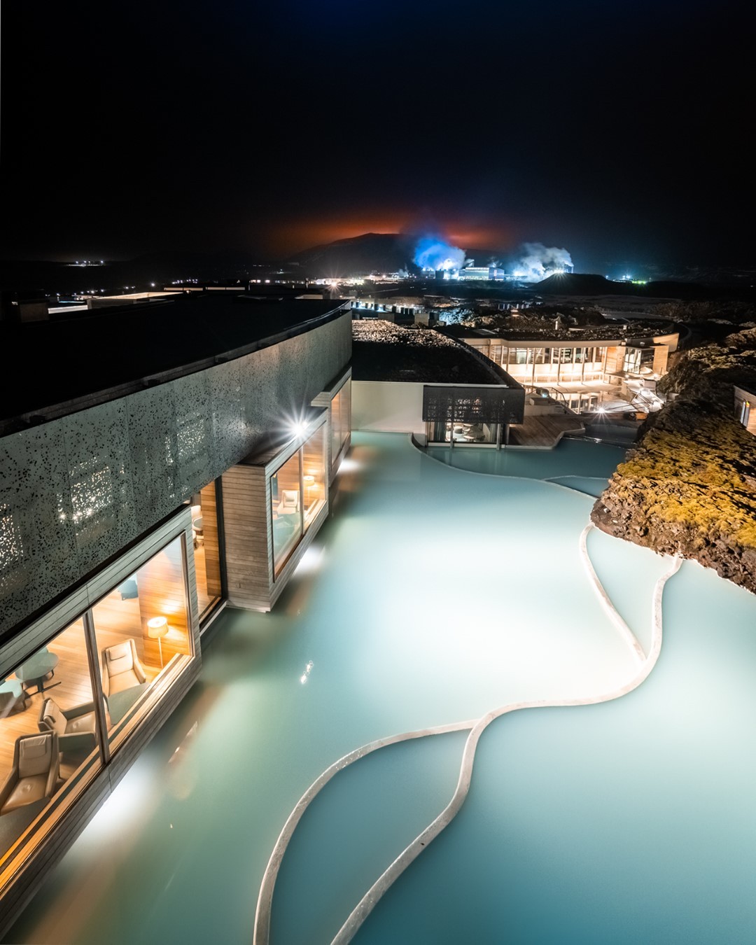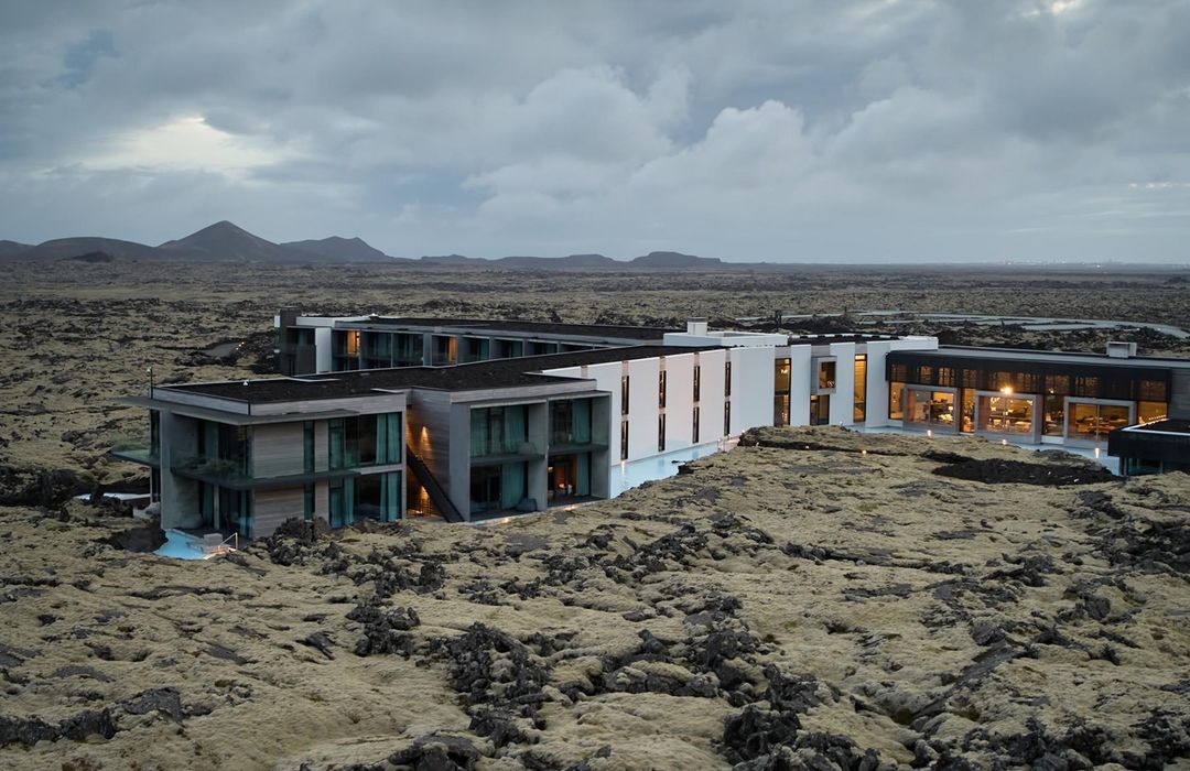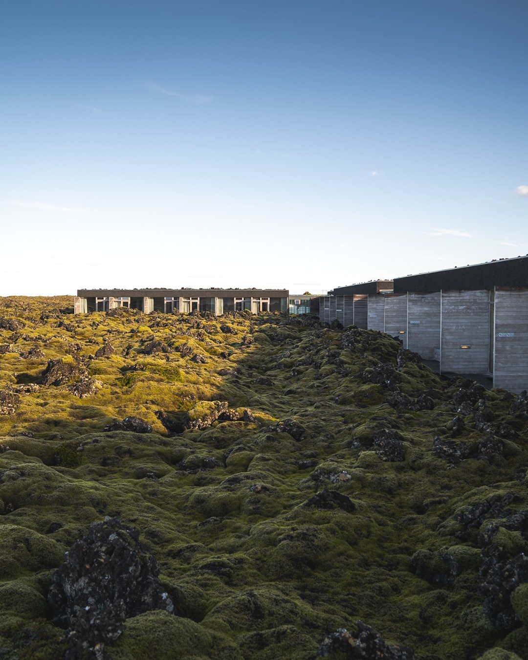O complexo de hotel fica dentro do espaço da lagoa no Geoparque Global, é cercado por lava coberta de musgo de 800 anos e tem uma vista deslumbrante em qualquer época do ano, das lavas, montanhas e da lagoa.