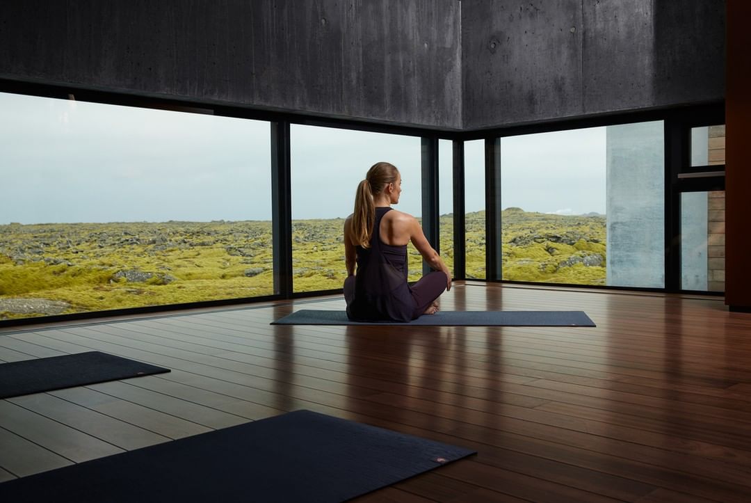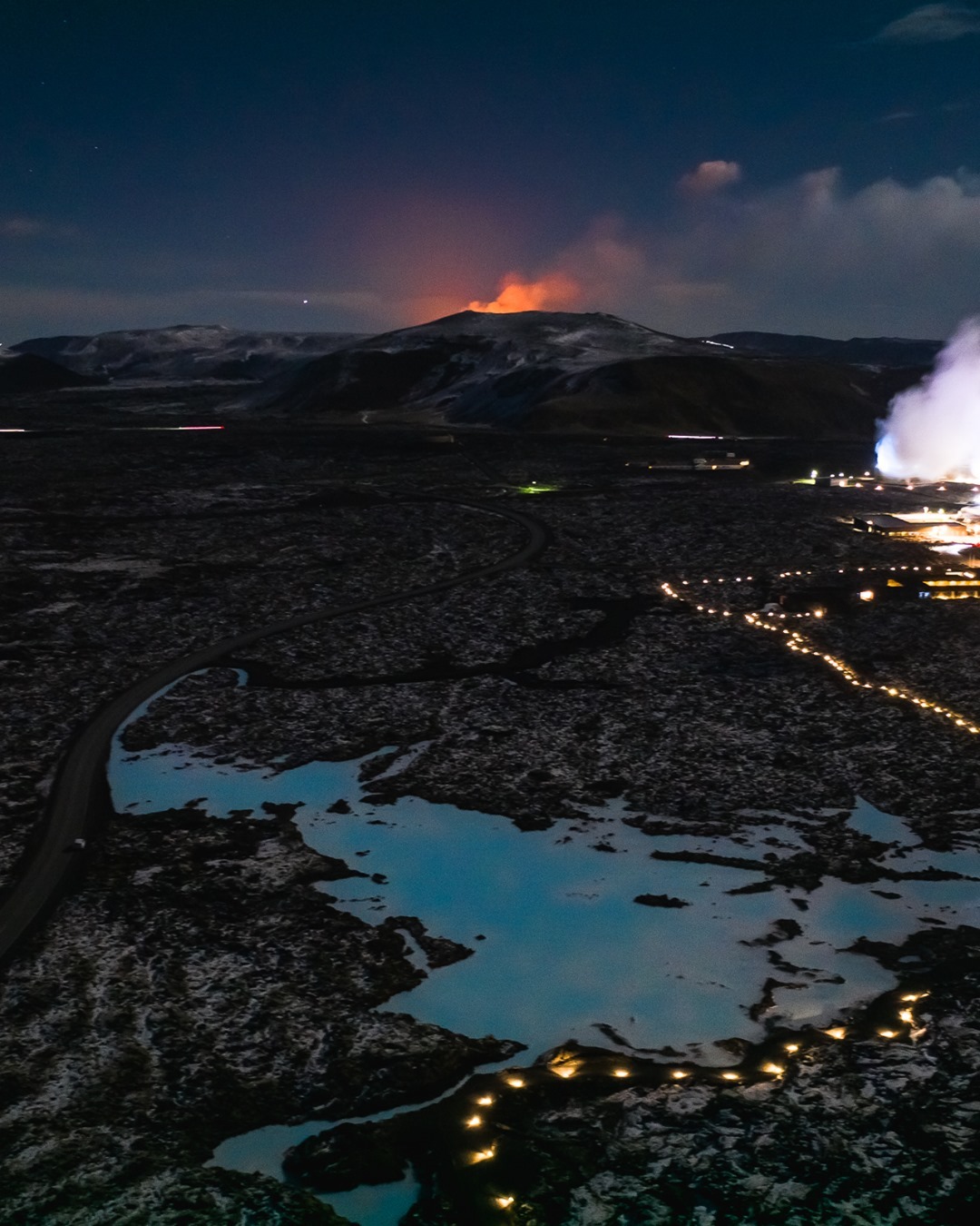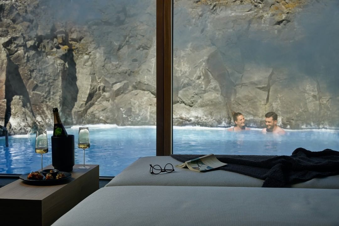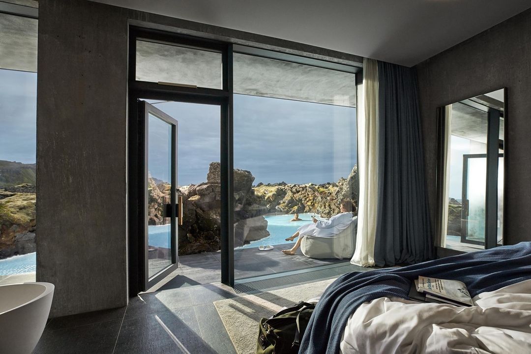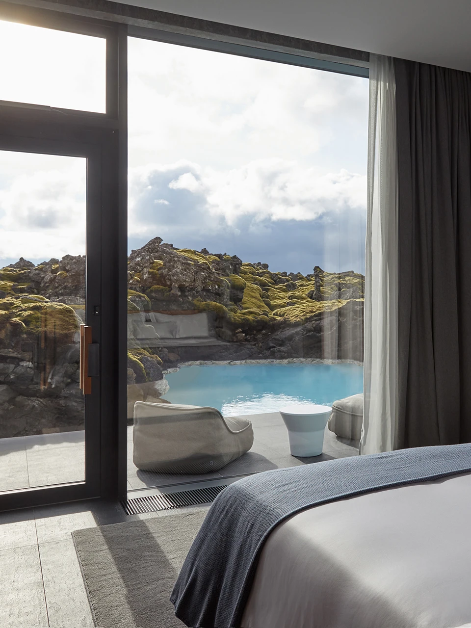 O complexo de hotel fica dentro do espaço da lagoa no Geoparque Global, é cercado por lava coberta de musgo de 800 anos e tem uma vista deslumbrante em qualquer época do ano, das lavas, montanhas e da lagoa.