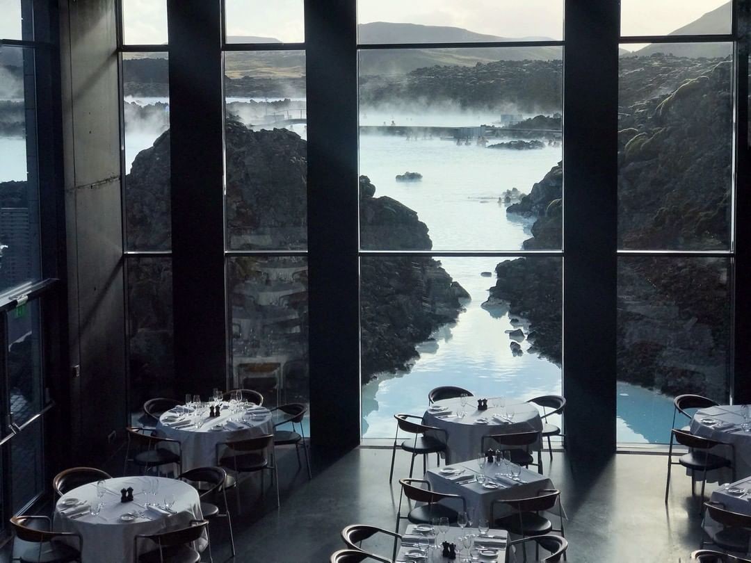 🌾 Restaurante Moss: Ocupa o ponto mais alto da Lagoa Azul, oferecendo uma vista deslumbrante do horizonte vulcânico. Opção requintada da cozinha islandesa, em 2019 recebeu recomendação do Guia Michelin. Os pratos transitam entre sabores da montanha e do mar e o restaurante oferece a opção de Menu Degustação Clássico e Vegano, onde os clientes provam de 5 a 7 pratos. Uma adega subterrânea incrível, inteira de pedras basalto, completa a experiência