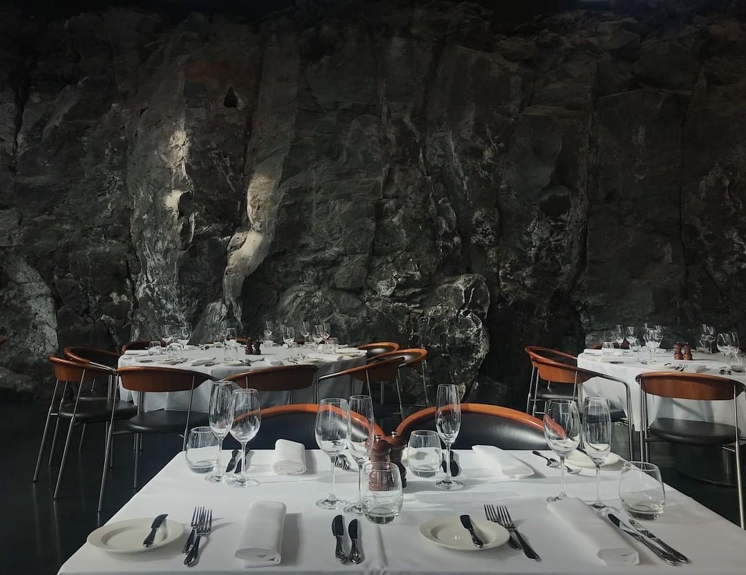 🍤 Lava Cave: O Restaurante que combina design moderno com o espírito selvagem da natureza islandesa . É cercado por lava centenária e pelas águas azuis da Lagoa Azul. Uma cozinha com criações fresh, que usam ingredientes sazonais e locais, através da culinária islandesa clássica