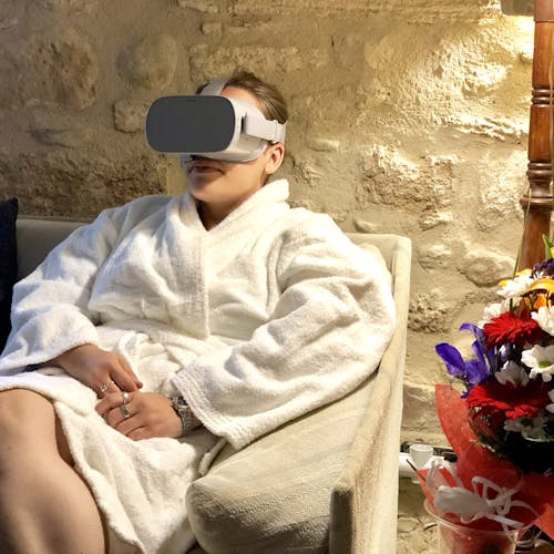 - 🍃. Relaxamento Virtual: Relaxamento profundo através do uso de realidade virtual. Mergulhe em um relaxamento expresso de 15 minutos onde você pode relaxar profundamente e ser transportado para um ambiente inesquecível sem se mover de um lugar para outro. Benefícios: Fornece um estado de calma aumentando os benefícios do relaxamento para a saúde, liberta o excesso de rigidez muscular e tensão emocional, eleva o estado vital da pessoa favorecendo uma atitude de confiança e segurança diante de situações indesejadas, melhora o humor e promove a integração de pensamentos positivos.