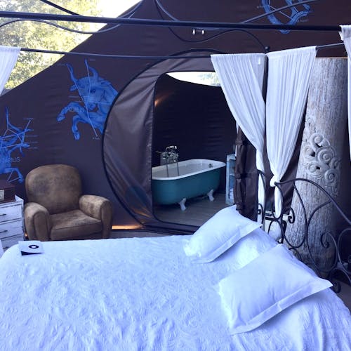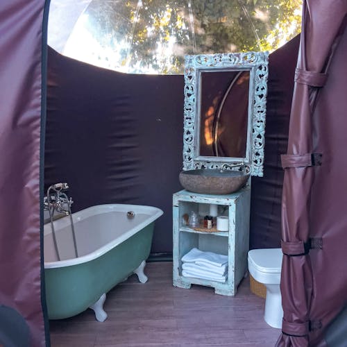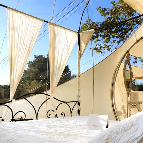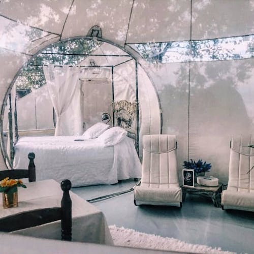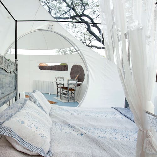 Forest Bubble: Bolha florestal de 26 m². Composto por 3 bolhas interligadas entre si com banheira na sala central, estacionamento privativo e jardim privativo de 400m2. Os quartos na floresta foram pensados para ter total privacidade, tranquilidade e independência, por isso têm uma banheira para desfrutar do relaxamento e duas bicicletas para fazer percursos. Este quarto inclui jantar e café da manhã. O jantar é composto por um menu de degustação de 6 pratos e sobremesas, com produtos sazonais. Além disso, a bolha está equipado com geladeira, cafeteira, frigobar e cesto com várias garrafas para fazer gin tônica e outras combinações, vinho e lanches. O café da manhã tem croissants, pão quente e frios e são servidos pela manhã. O menu é feito diariamente em função da época e da variedade da cozinha e está adaptado a qualquer intolerância ou alergia, assim como a vegetarianos e veganos.