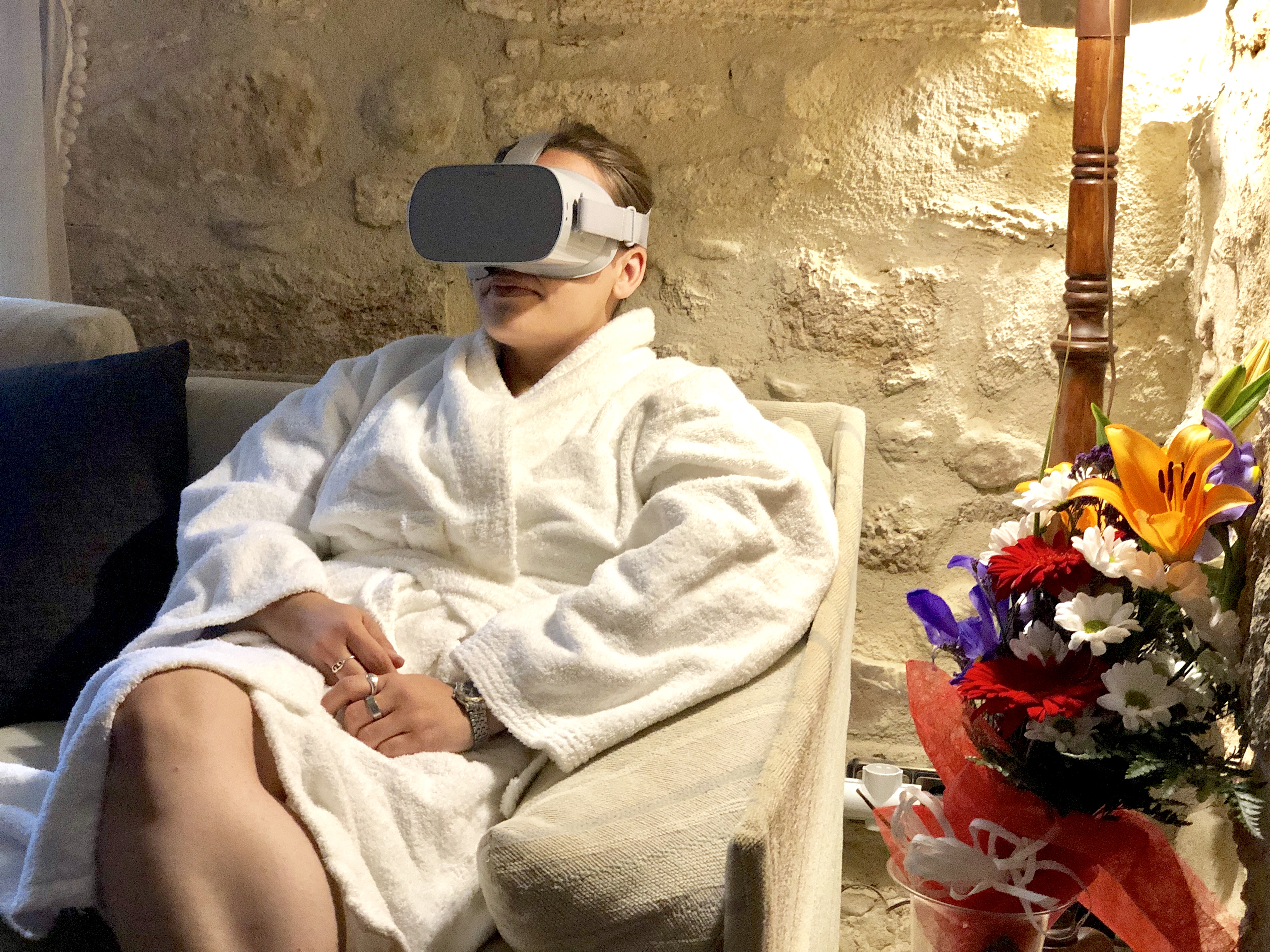 - 🍃. Relaxamento Virtual: Relaxamento profundo através do uso de realidade virtual. Mergulhe em um relaxamento expresso de 15 minutos onde você pode relaxar profundamente e ser transportado para um ambiente inesquecível sem se mover de um lugar para outro. Benefícios: Fornece um estado de calma aumentando os benefícios do relaxamento para a saúde, liberta o excesso de rigidez muscular e tensão emocional, eleva o estado vital da pessoa favorecendo uma atitude de confiança e segurança diante de situações indesejadas, melhora o humor e promove a integração de pensamentos positivos.