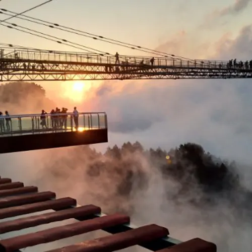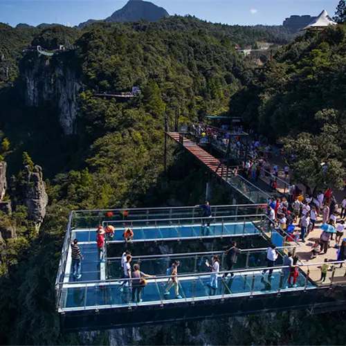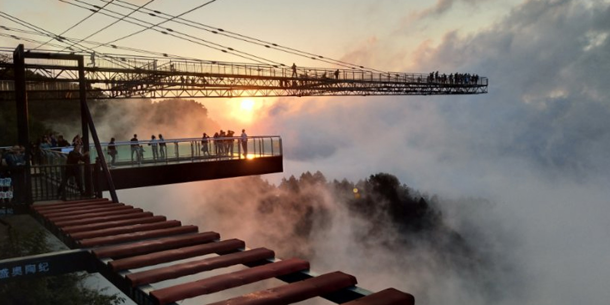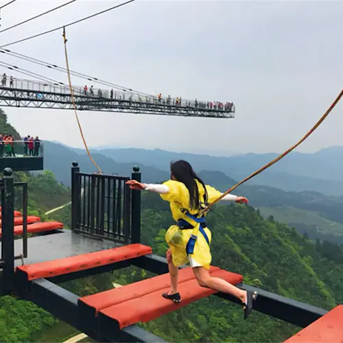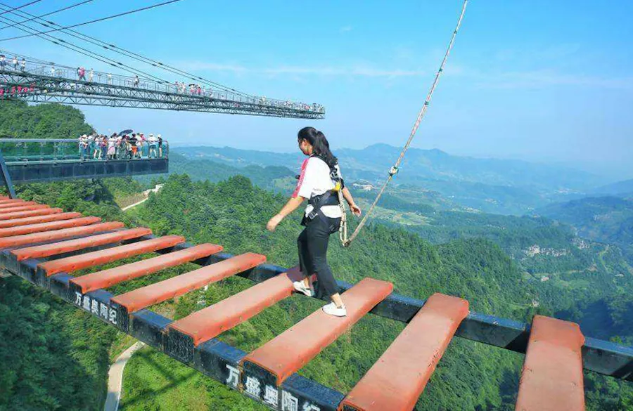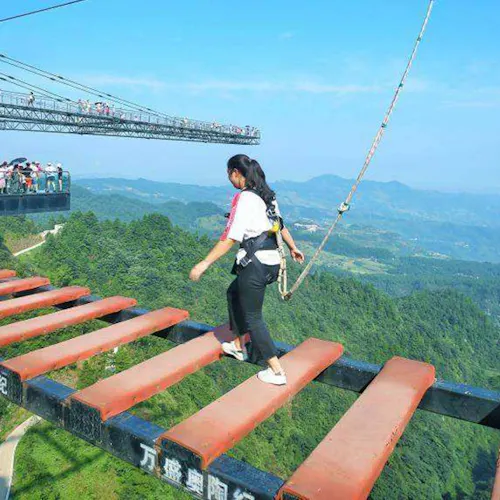 Salto Extremo como é conhecida, é a atividade onde uma ponte de tábuas faz a travessia de corajosos turistas de uma ponta à outra e fica dentro do parque temático Wansheng Ordovician na China.