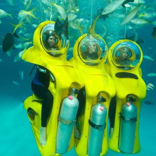 O submarino é motorizado e se locomove sozinho e sem qualquer esforço por parte do usuário, é seguro e fácil de usar. Você fica sentado durante todo o percurso e será levado sem grande velocidade para apreciar corais e toda a extensão do mar de forma tranquila. A parte da cabeça é protegida por uma "bolha" como um vidro grosso, ao ser colocado contra a água, permite que se respire ar normalmente sem a necessidade de utilizar equipamentos de oxigênio.
