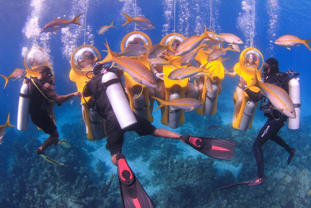 Sobre um mini submarino, você irá curtir essa experiência divertida e ter a oportunidade de ver a vida marinha de forma livre nas águas cristalinas do Caribe.