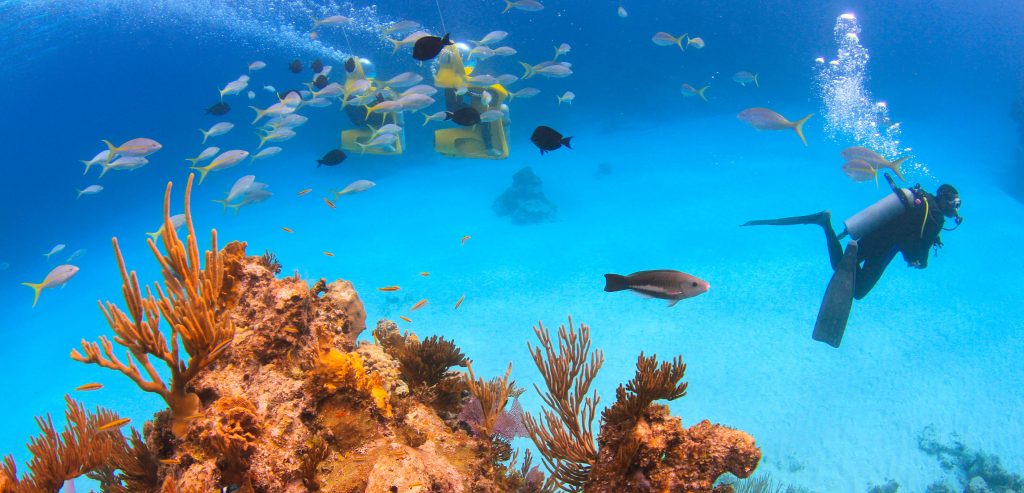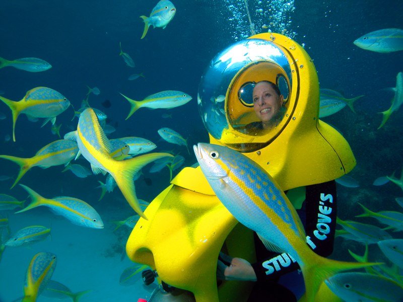 Seja seu próprio submarino nessa imersão divertida no mar das Bahamas
