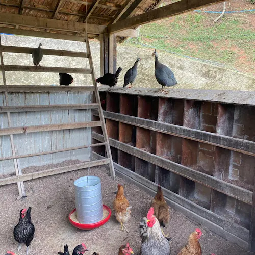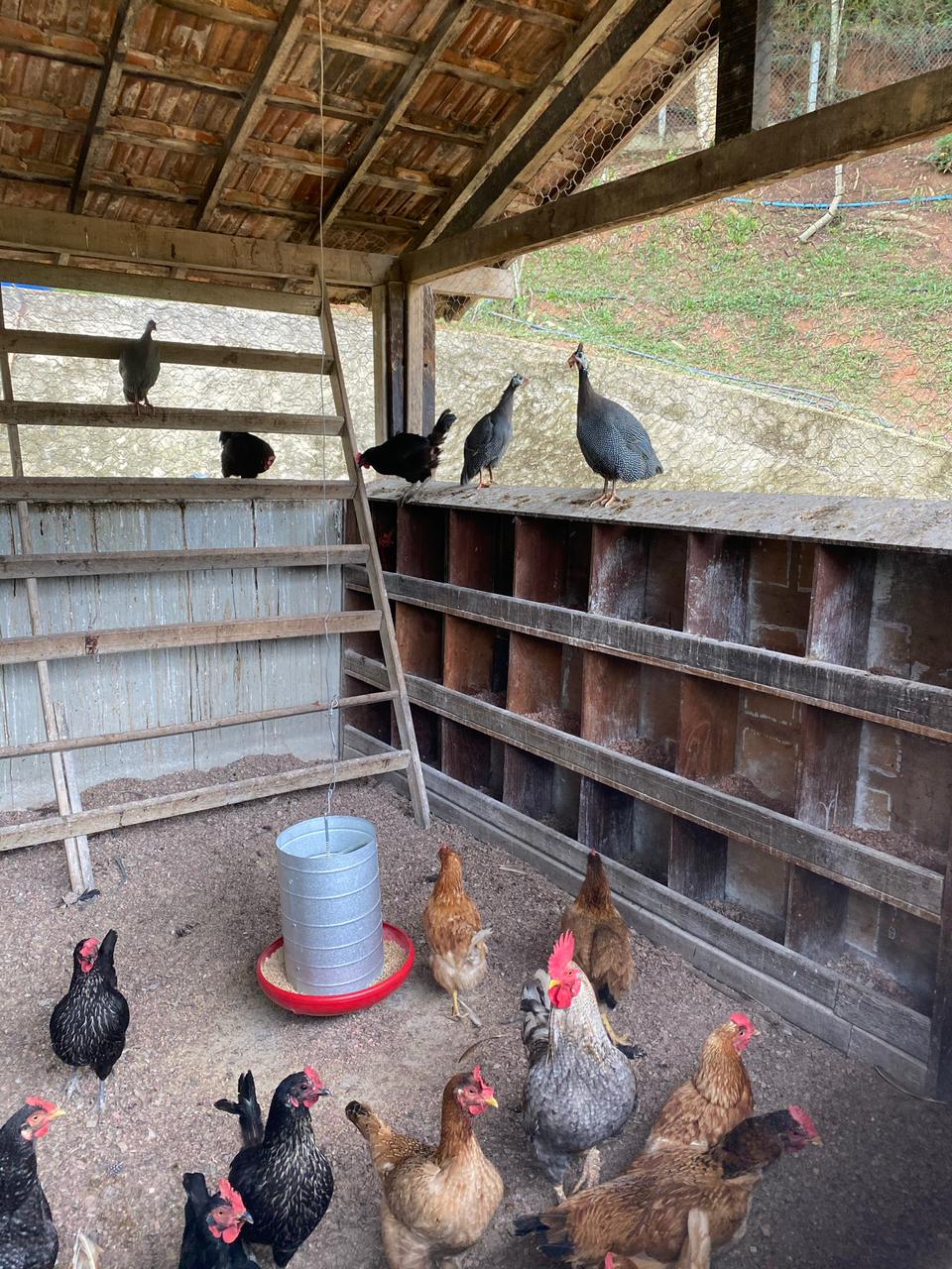 Lembre- se que você está numa área rural e é justamente isso que torna a experiência ainda mais especial! As galinhas ficam soltas parte do dia para ajudar no controle de animais peçonhentos. A entrada da casa é privativa e o acesso ao lago é exclusivo, através de uma estradinha de terra.