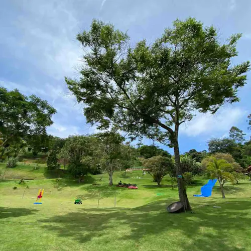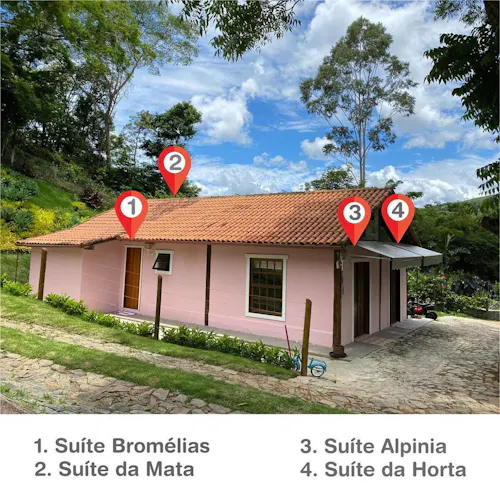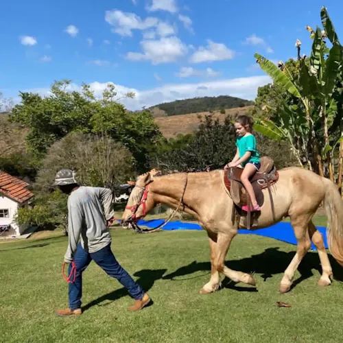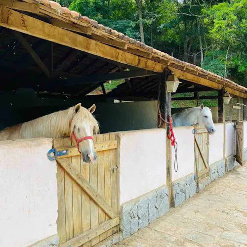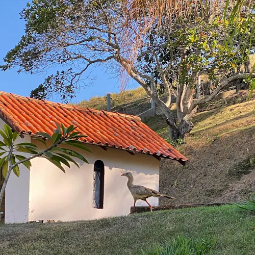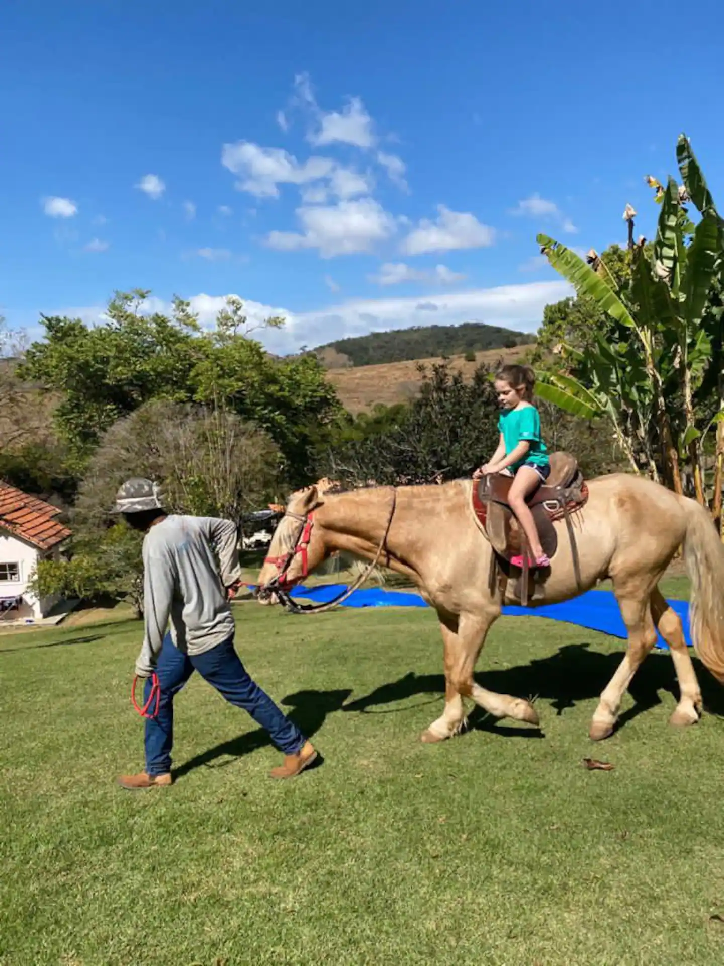 - 🐴 Mini Fazendinha da propriedade e animais visitantes soltos (cavalos, bezerrinha, galinhas, maritacas, tucanos, siriemas, saracuras, trinca-ferro, canário da terra, saíra, bem-te-vi, joão-de-barro, colero, viuvinha, sabiá, jacu, gavião e muitos outros pássaros!)