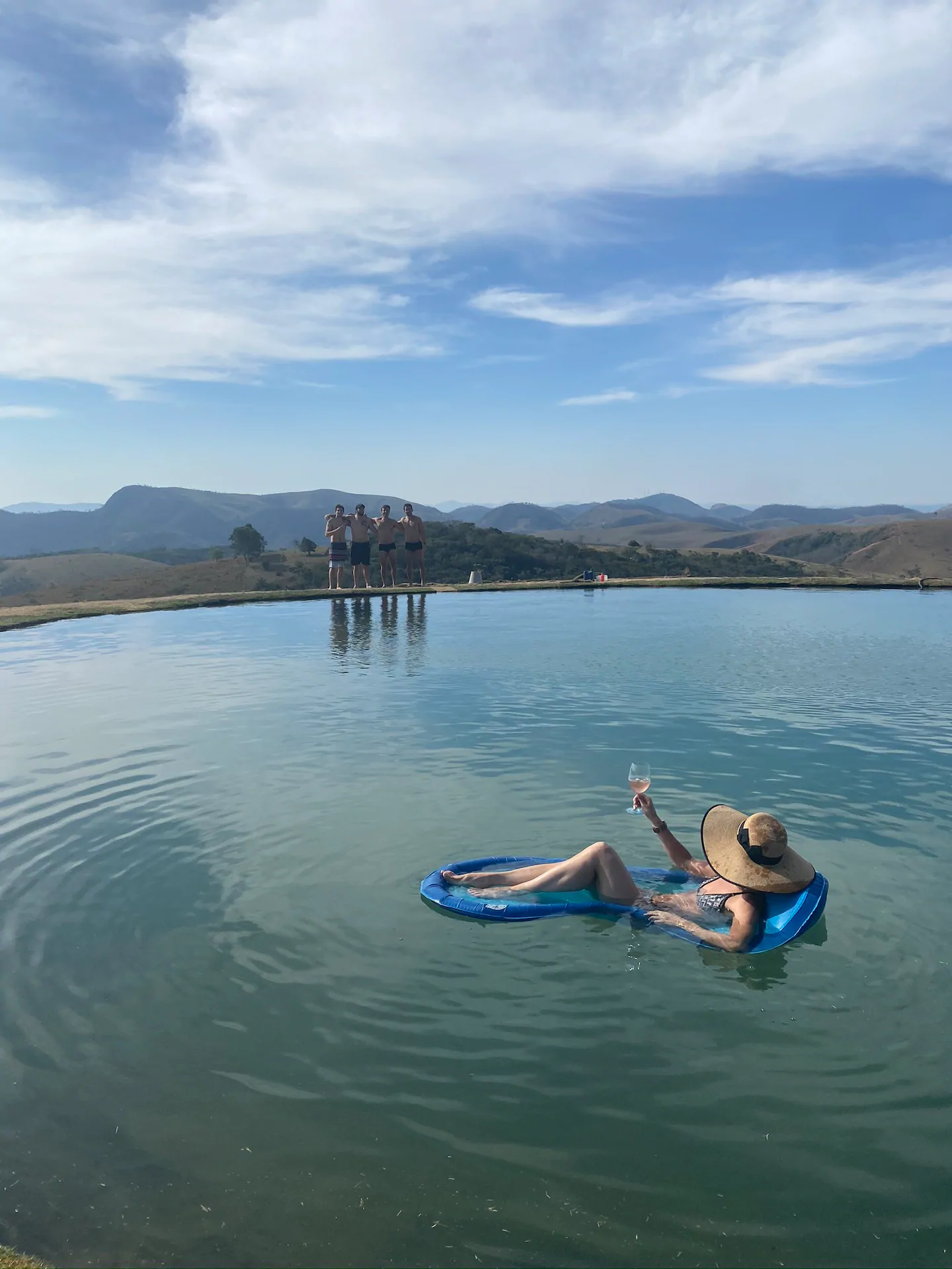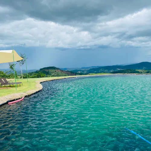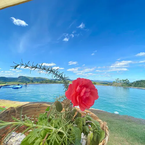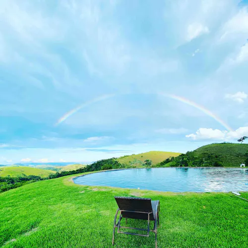 - 🌄 Lago com vista cinematográfica das montanhas, para nadar e assistir o pôr do sol (o caminho é uma aventura onde é possível ir a pé pela estrada de terra dentro do próprio terreno ou de carro!)