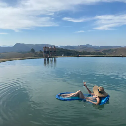 Experiências por lá: que tal assar marshmallows na fogueira? Tomar um drink enquanto nada no lago e assiste o pôr do sol nas montanhas? Interagir com animais e pegar ovos direto do galinheiro? Colher temperos e verduras direto da horta para a mesa? Ou então fazer um pesto de manjericão e hortelã, com noz pecan que acabou de cair do pé?