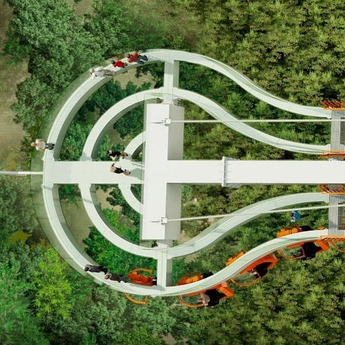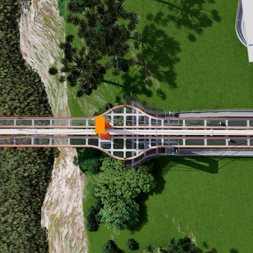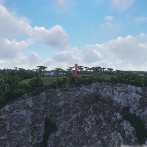 Uma plataforma estaiada de vidro e aço. Um empreendimento com características únicas e que oferece duas atrações simultâneas: A plataforma e um monotrilho.