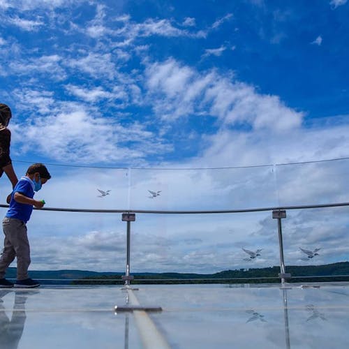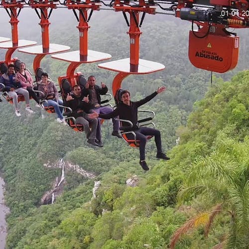 O visitante poderá apreciar a paisagem caminhando por cima do vidro ou andar por baixo da plataforma num monotrilho com 10 cadeiras suspensas, esse monotrilho foi dado o nome de Abusado! A altura? São 360 metros pra você apreciar o visual maravilhoso que envolve a plataforma com a sensação de estar flutuando!