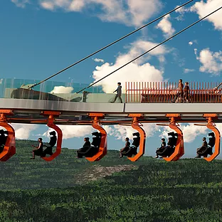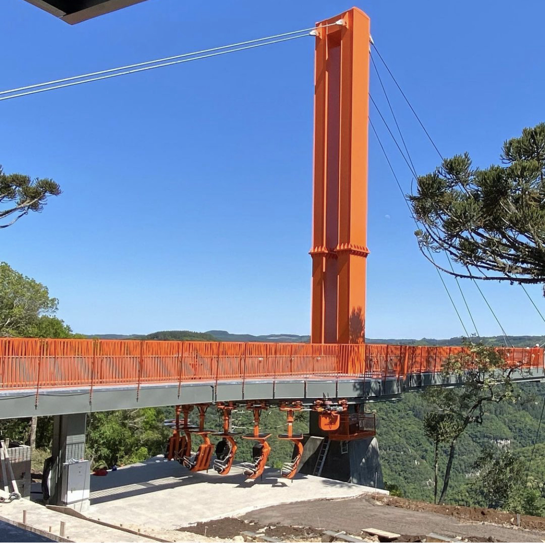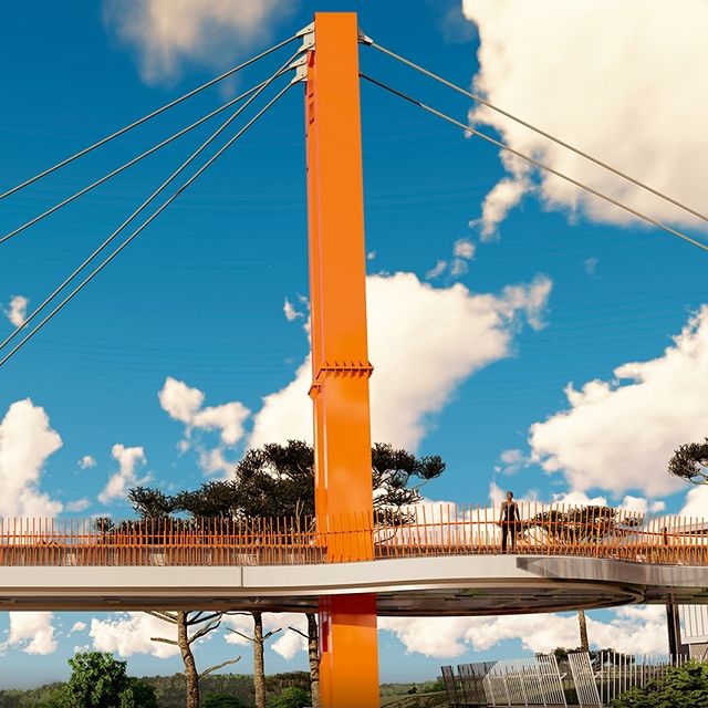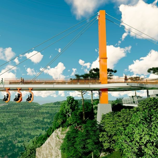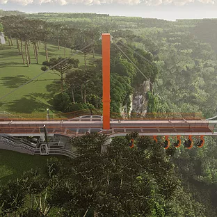 Uma plataforma estaiada de vidro e aço. Um empreendimento com características únicas e que oferece duas atrações simultâneas: A plataforma e um monotrilho.
