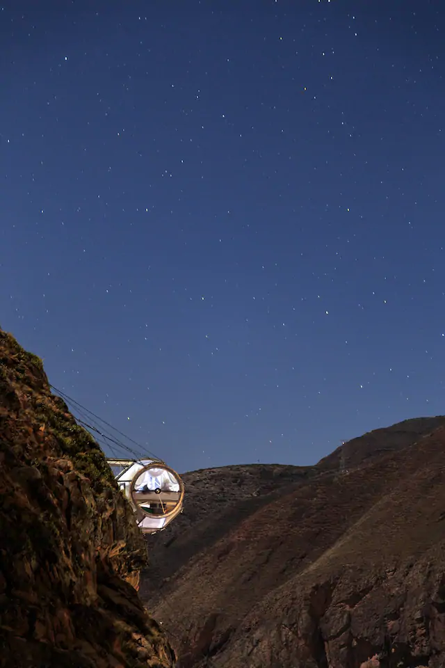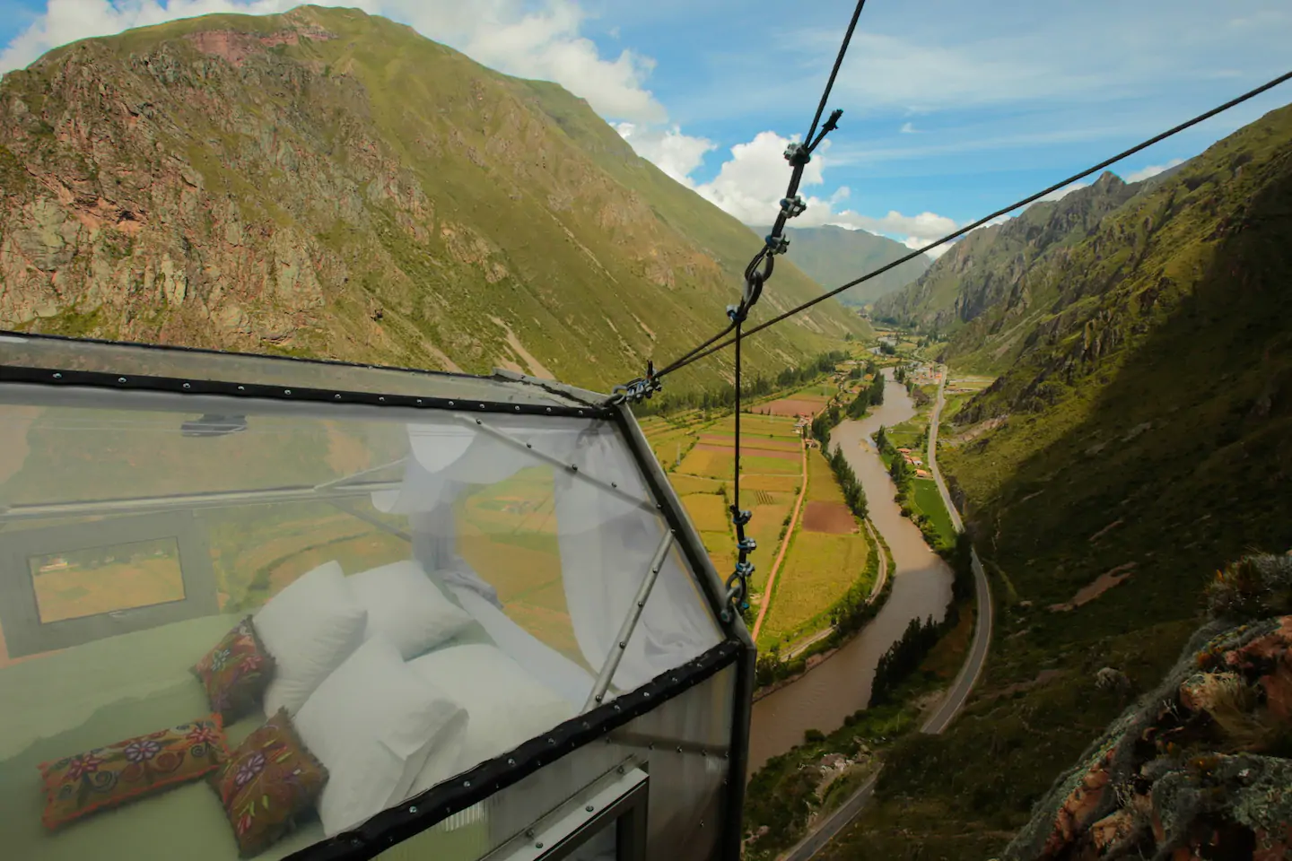No Skylodge Adventure Suites você terá a oportunidade de dormir completamente suspenso em um penhasco dentro de uma acomodação em formato de cápsula.