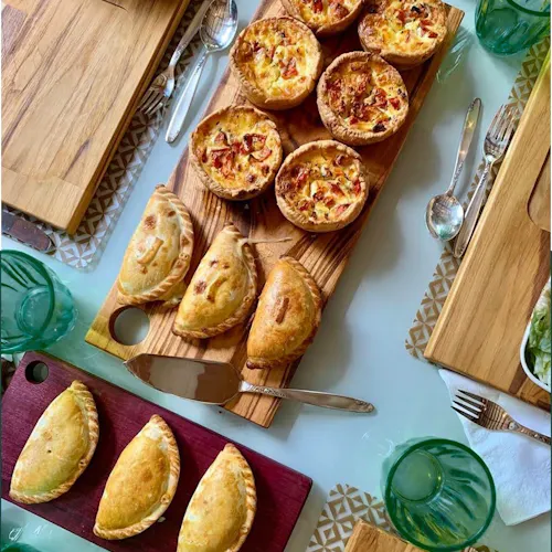 13:00: Almoço: 1Um Almoço leve, com salada fresca, quiches do Chef Christophe Guillard da Brioche Brasil & Empanadas Argentinas, e uma sobremesa.