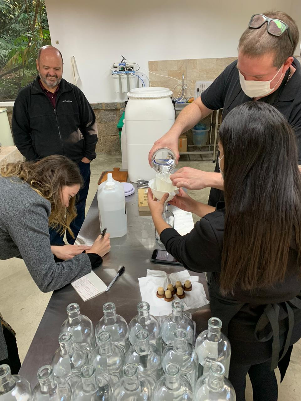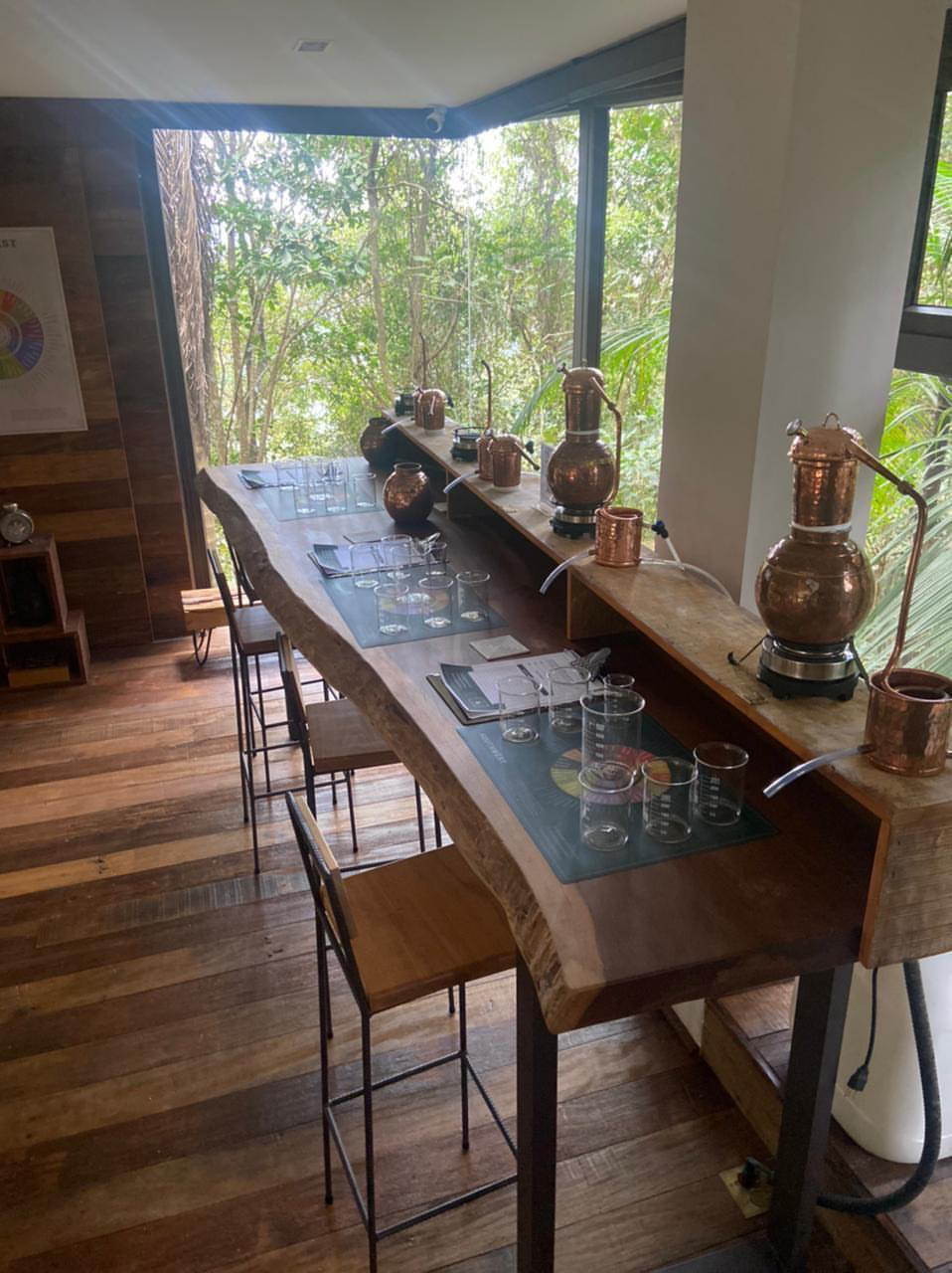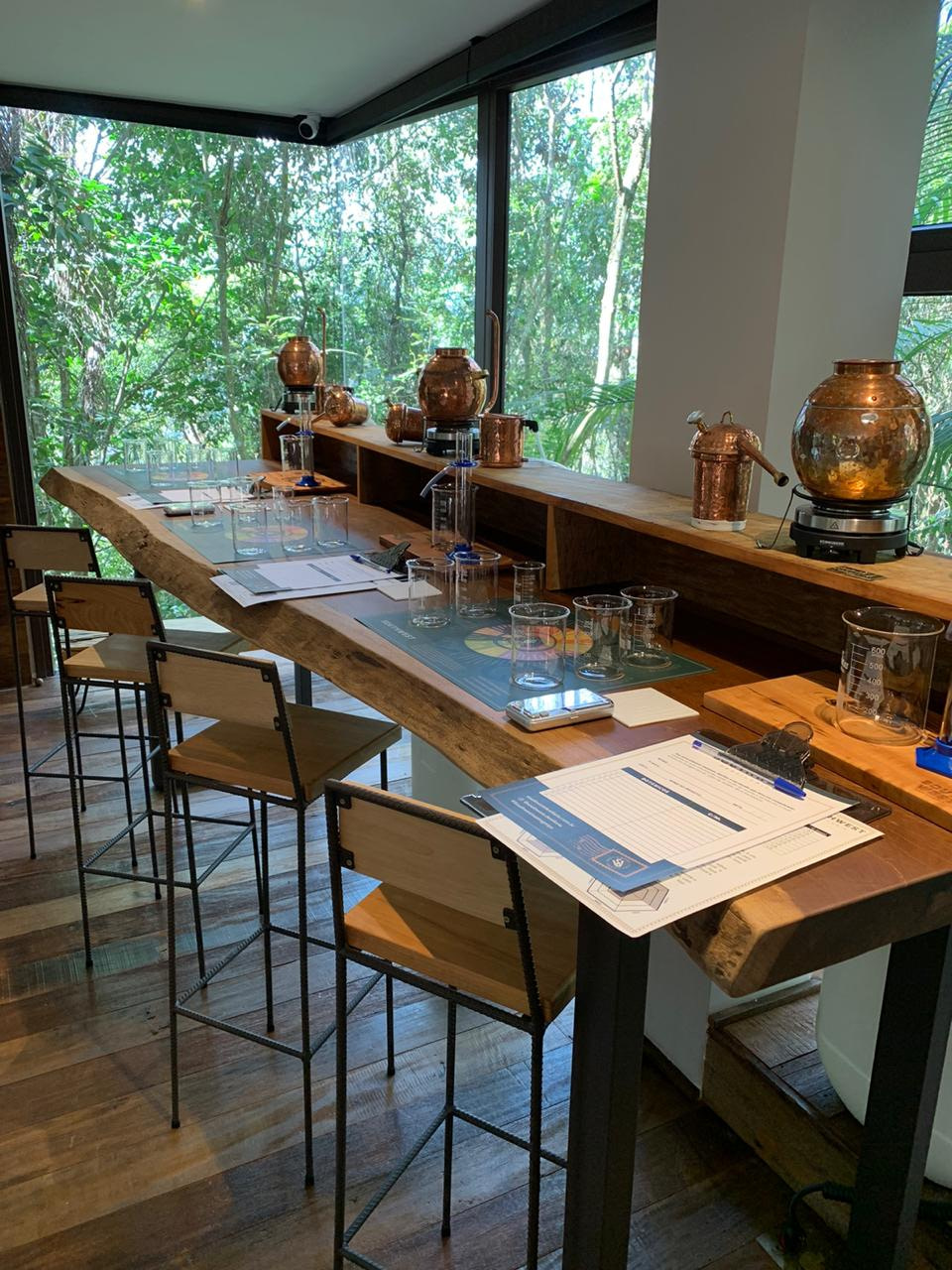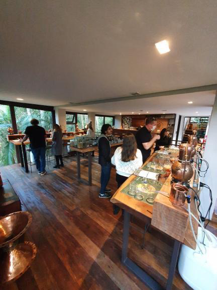 Durante o processo de destilação, cada participante escolhe as próprias especiarias que quer utilizar, o tipo de Gin e no final até o teor alcoólico, tudo em um processo bem minucioso, descontraído e repleto de conhecimento.