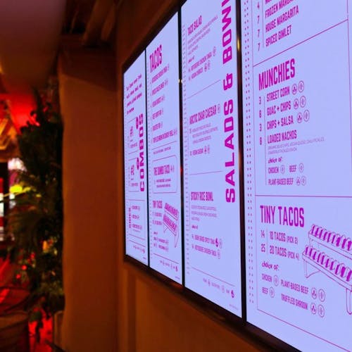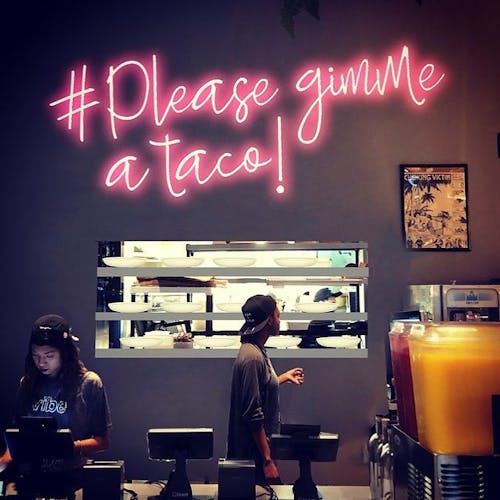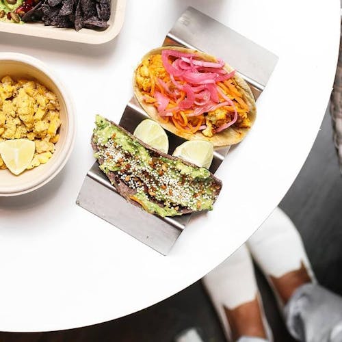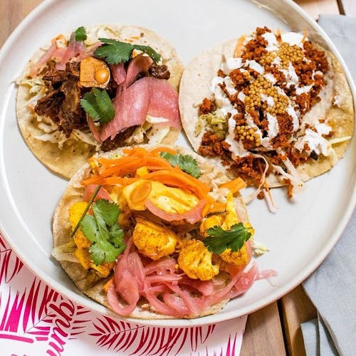 - 🌮 Tacos: Todos os tacos são preparados com tortilhas feitas no local de milho orgânico. Entre os sabores (todos os misturas perfeitas de ingredientes), os principais são: o inovador Impossible Tacos - onde a carne vegetal Impossible Meat - que é simplesmente incrível, frango, peixe grelhado, costelinhas, cogumelos e couve-flor carbonizada).