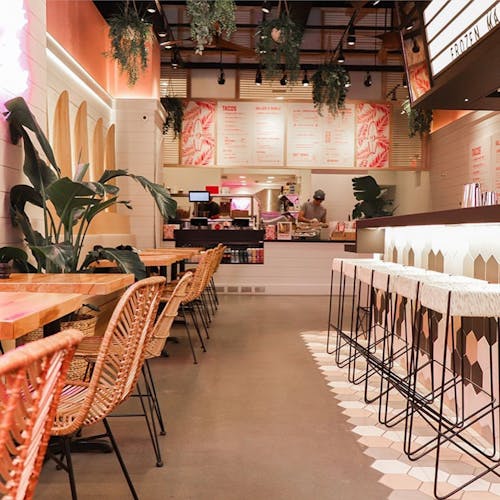 O local tem um design mega instagramável e dá pra ficar bastante tempo admirando cada detalhe. É demais, lindo e tem uma vibe super descolada. 🎶 Se você não curte restaurantes com música um pouco mais alta...vá preparado: aqui a música (boa diga-se de passagem), é um dos pontos de destaque do lugar, e a galera por lá não mede esforços para que os clientes façam suas refeições com certo gingado e animação! Além disso o pessoal do staff é jovem e bem-humorado.