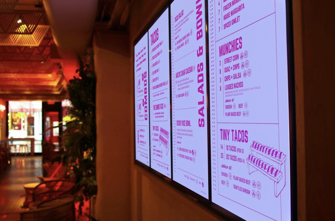 - 🌮 Tacos: Todos os tacos são preparados com tortilhas feitas no local de milho orgânico. Entre os sabores (todos os misturas perfeitas de ingredientes), os principais são: o inovador Impossible Tacos - onde a carne vegetal Impossible Meat - que é simplesmente incrível, frango, peixe grelhado, costelinhas, cogumelos e couve-flor carbonizada).