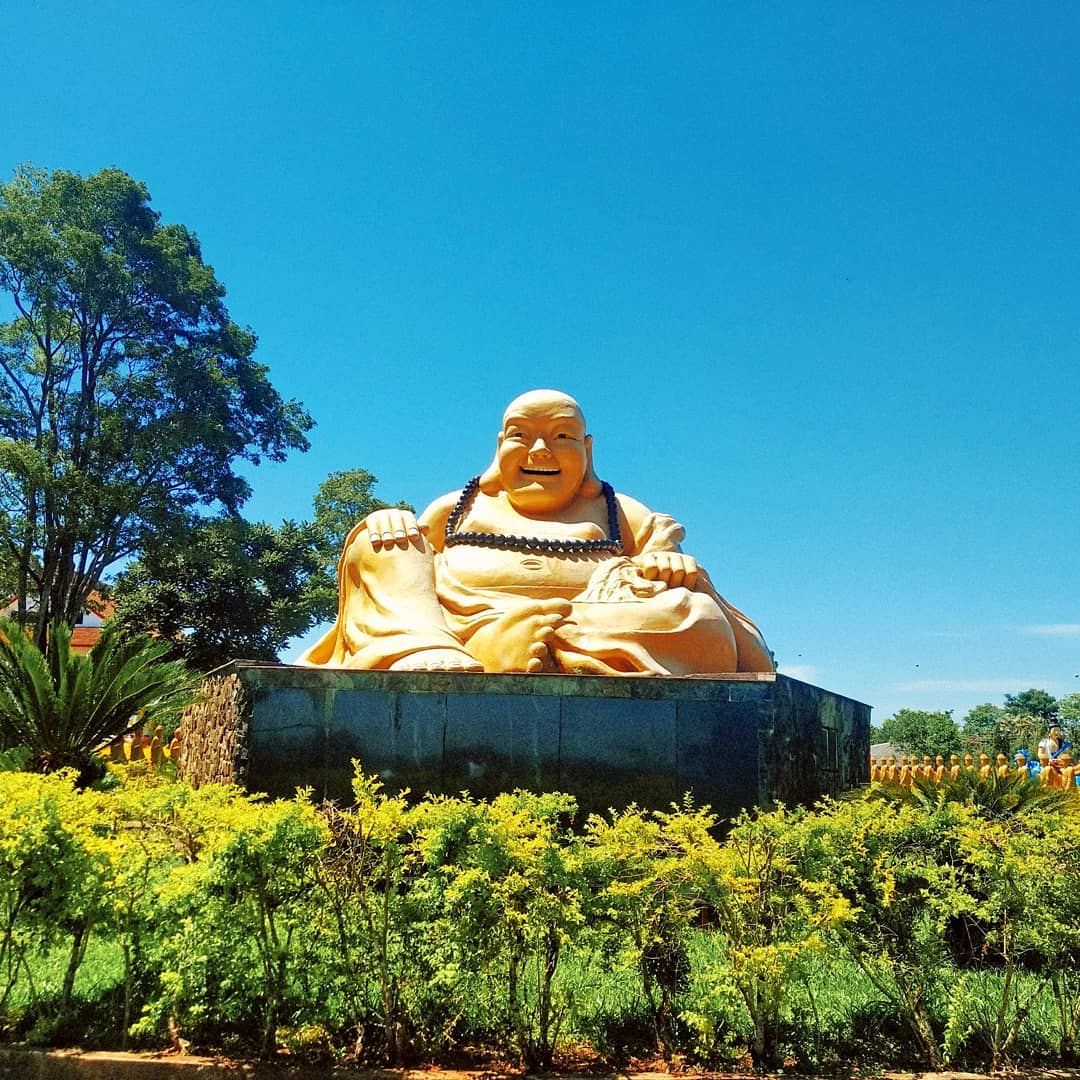 O Templo possui 3 estátuas de Buda entre eles o sorridente de 7 metros de altura que faz sucesso no local.