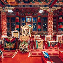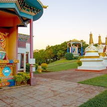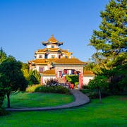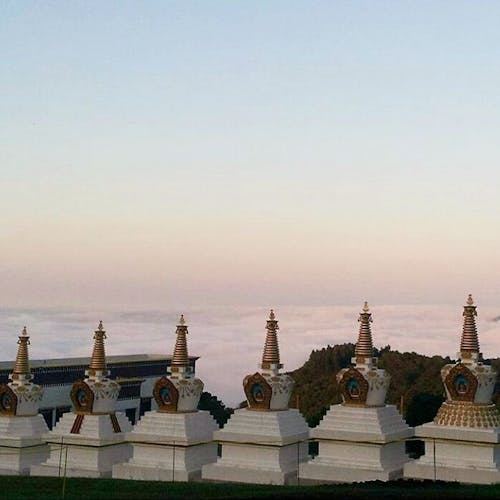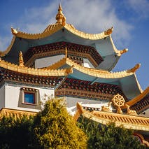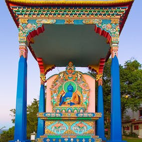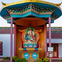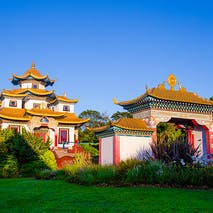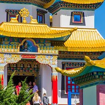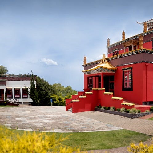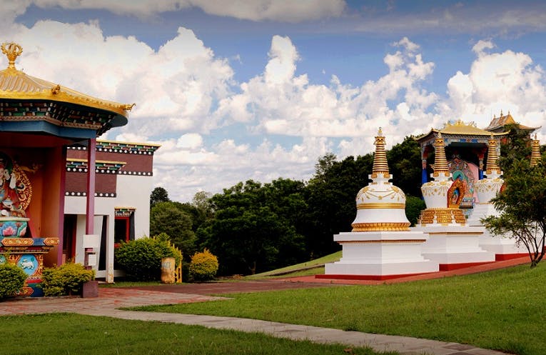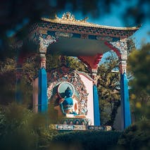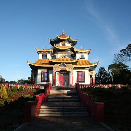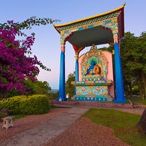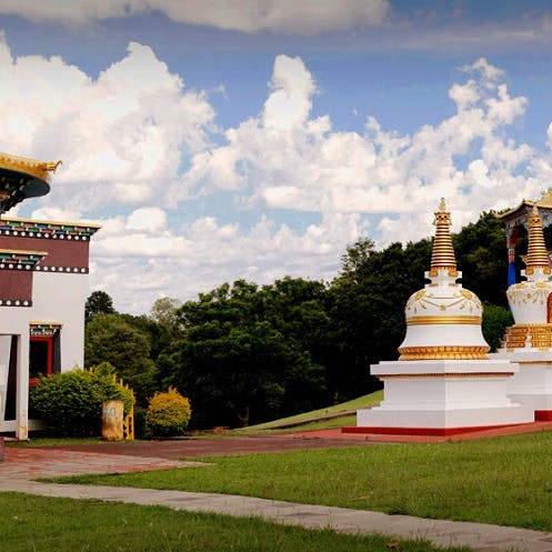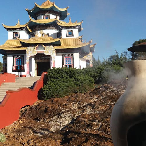 Você vai encontrar no local além do grande espaço a céu aberto, duas construções belíssimas, cheias de histórias e significados. Uma delas é o Templo e a outra a Terra Pura de Guru Rinpoche - réplica da uma morada celestial.