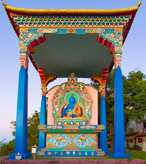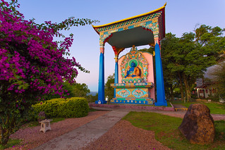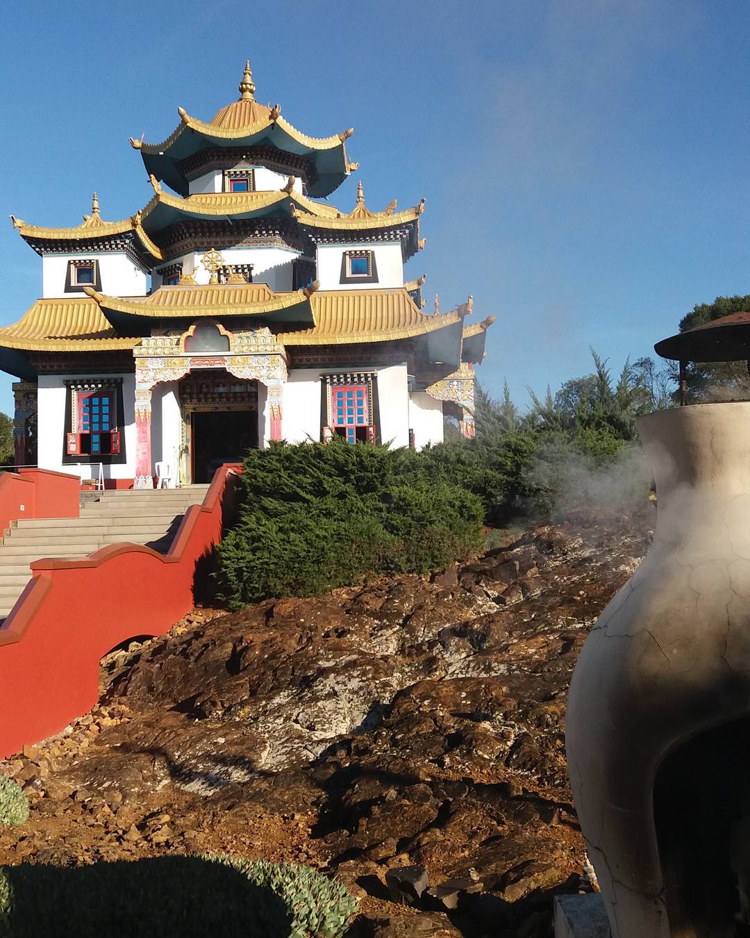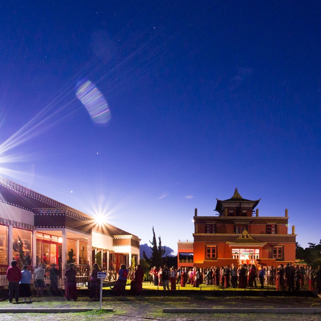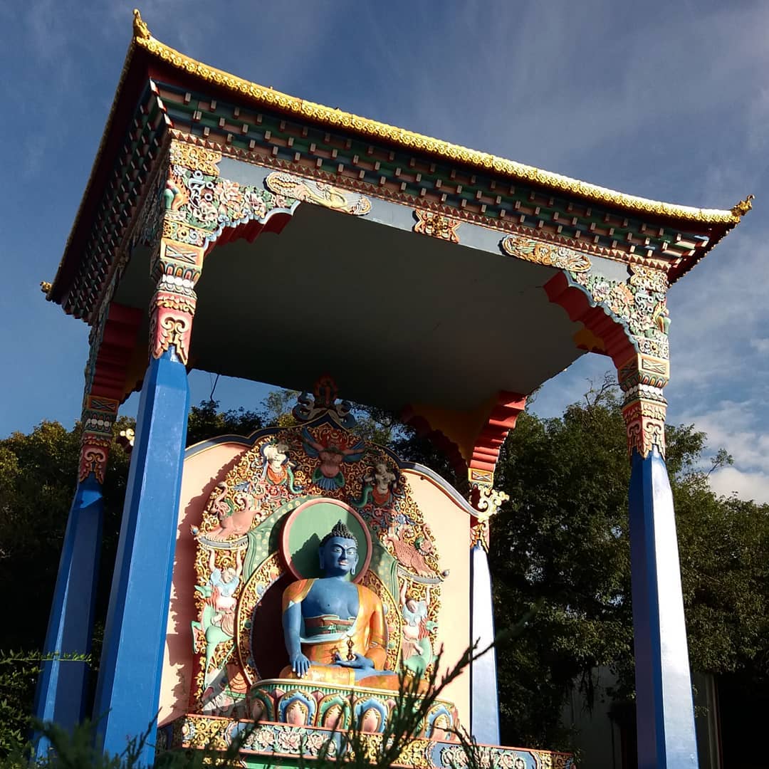 Você vai encontrar no local além do grande espaço a céu aberto, duas construções belíssimas, cheias de histórias e significados. Uma delas é o Templo e a outra a Terra Pura de Guru Rinpoche - réplica da uma morada celestial.