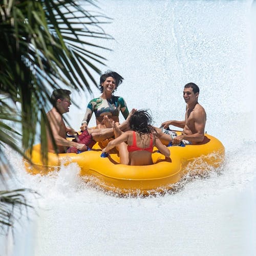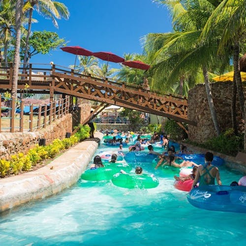 Correnteza Encantada: Fica na parte dos brinquedos para toda a família. Um rio super relaxante e você vai sobre uma boia que te leva correnteza abaixo.