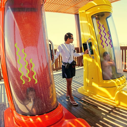 Atlantis: Atração muito disputada e divertida. Descida com mais três pessoas em uma boia de uma torre de 17,5 metros de altura, é aquela atração eletrizante boa pra ir com os amigos várias vezes. Nessa aqui, segure firme.
