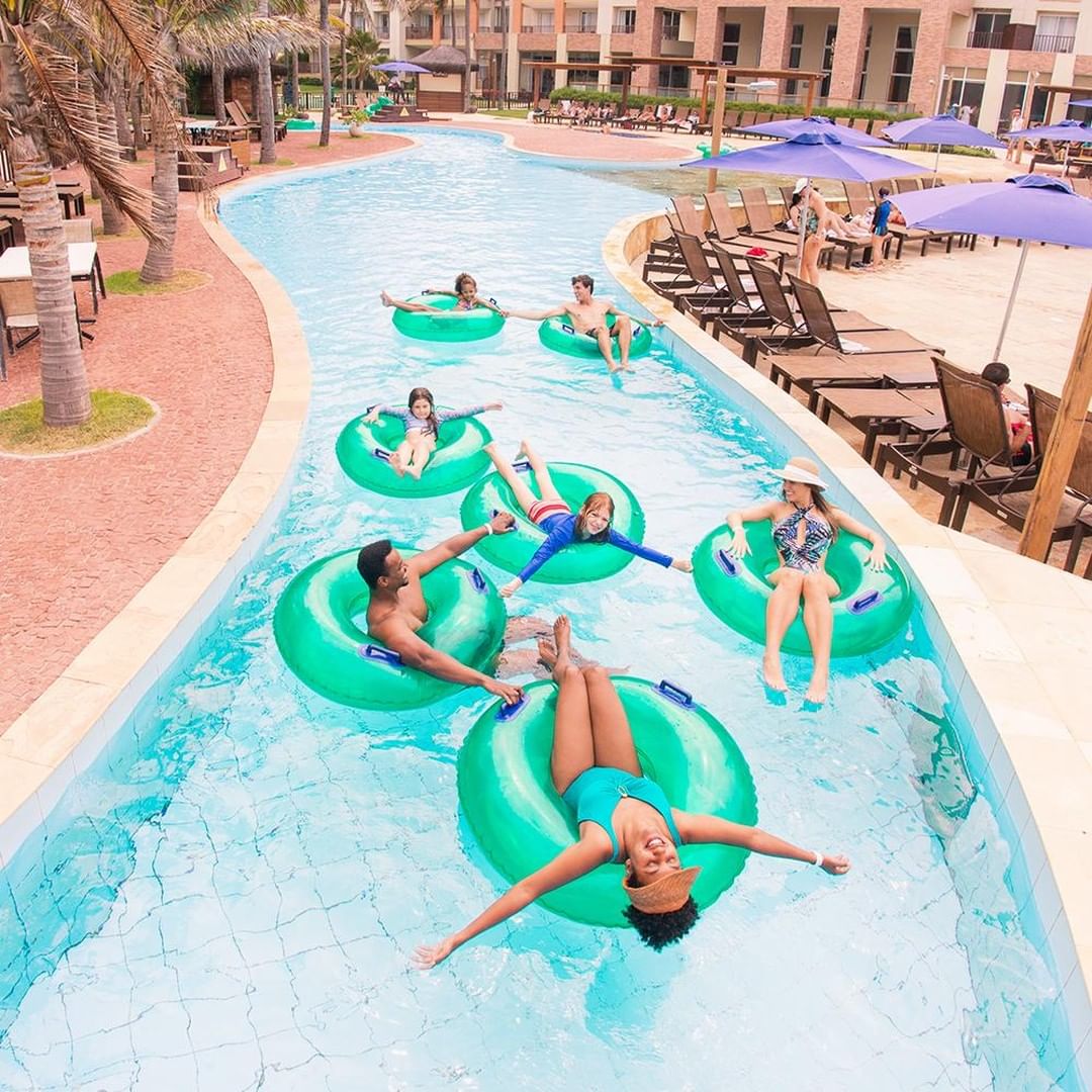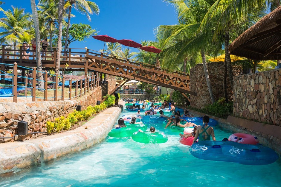 Correnteza Encantada: Fica na parte dos brinquedos para toda a família. Um rio super relaxante e você vai sobre uma boia que te leva correnteza abaixo.